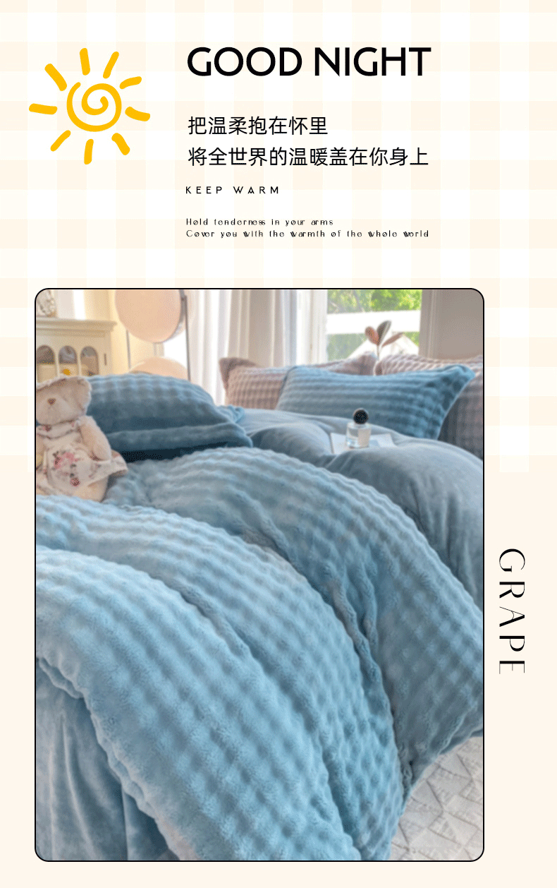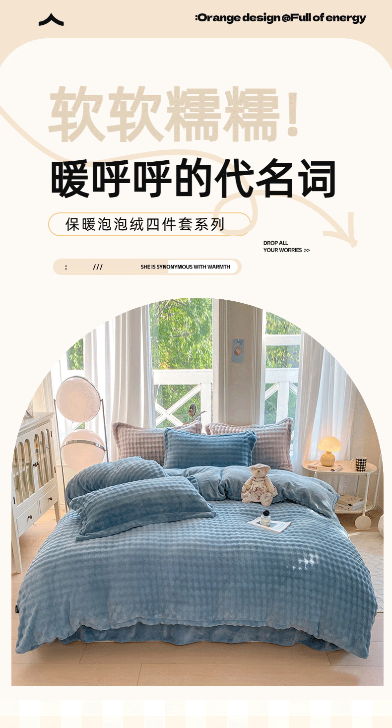 商品名称:(总)悦织湾家纺 2025新款泡泡绒仿兔毛绒四件套牛奶绒纯色轻奢床上用品4件套货源足