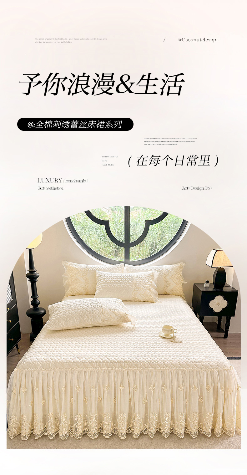 床上用品 > 床裙 > 罗艺轩 2025新款全棉纯棉蕾丝刺绣琉璃单床裙床裙单件(1.5m控价135起、1.8m控价140起、1.8*2.2m控价145起、2.0m控价150起) 琉璃-奶白