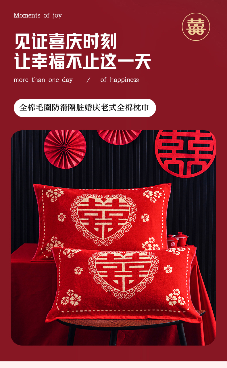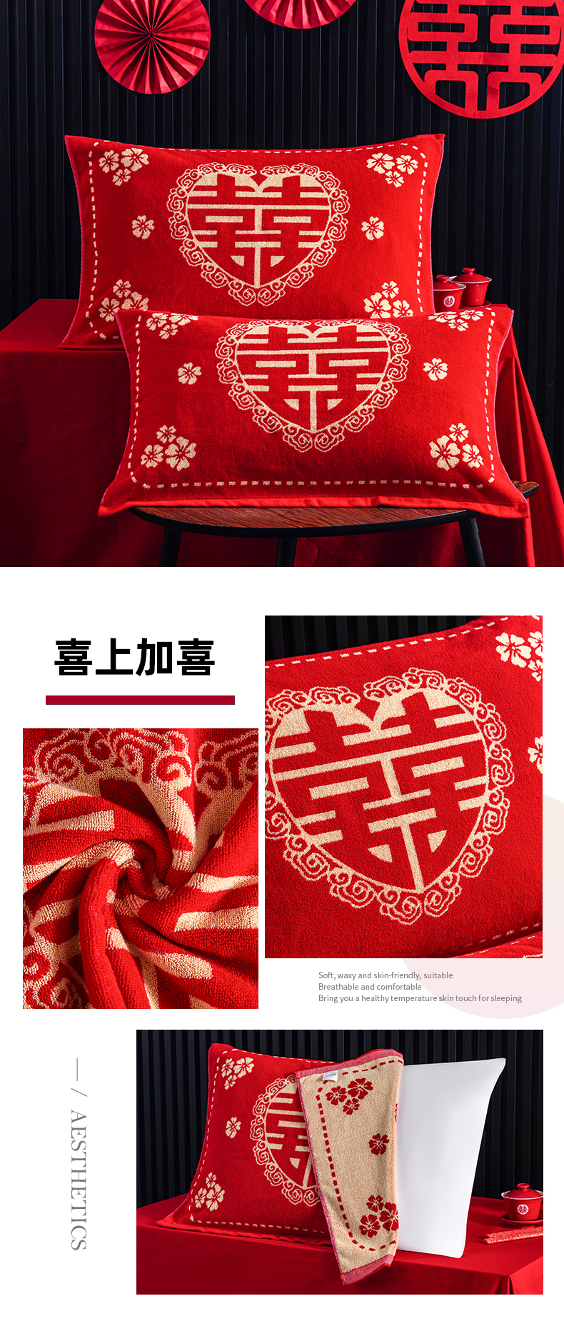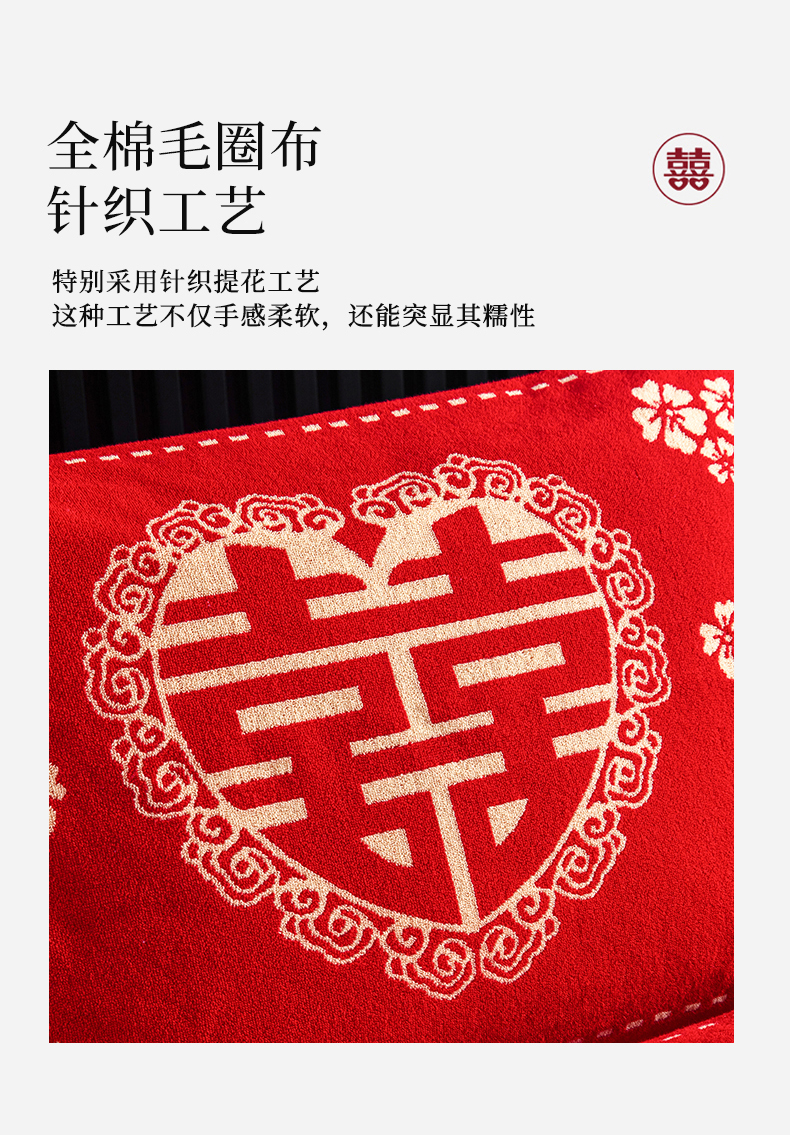 商品名称:美宜家 2025新款全棉毛圈防滑隔脏婚庆老式全棉枕巾 喜上加喜