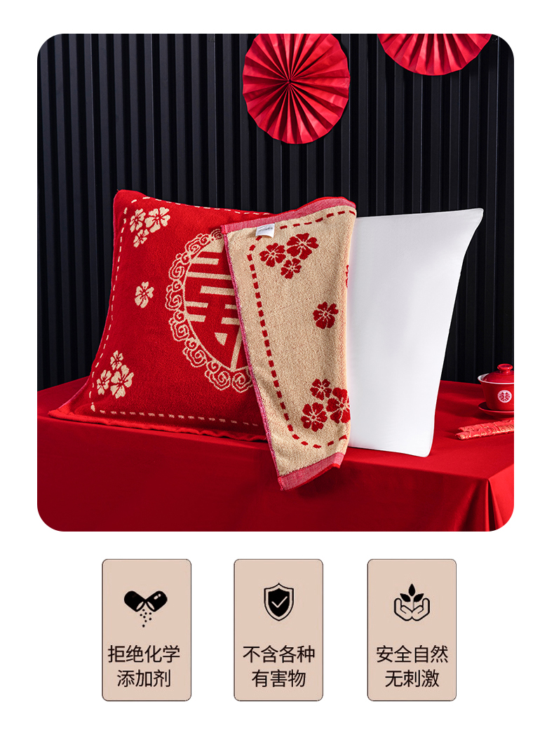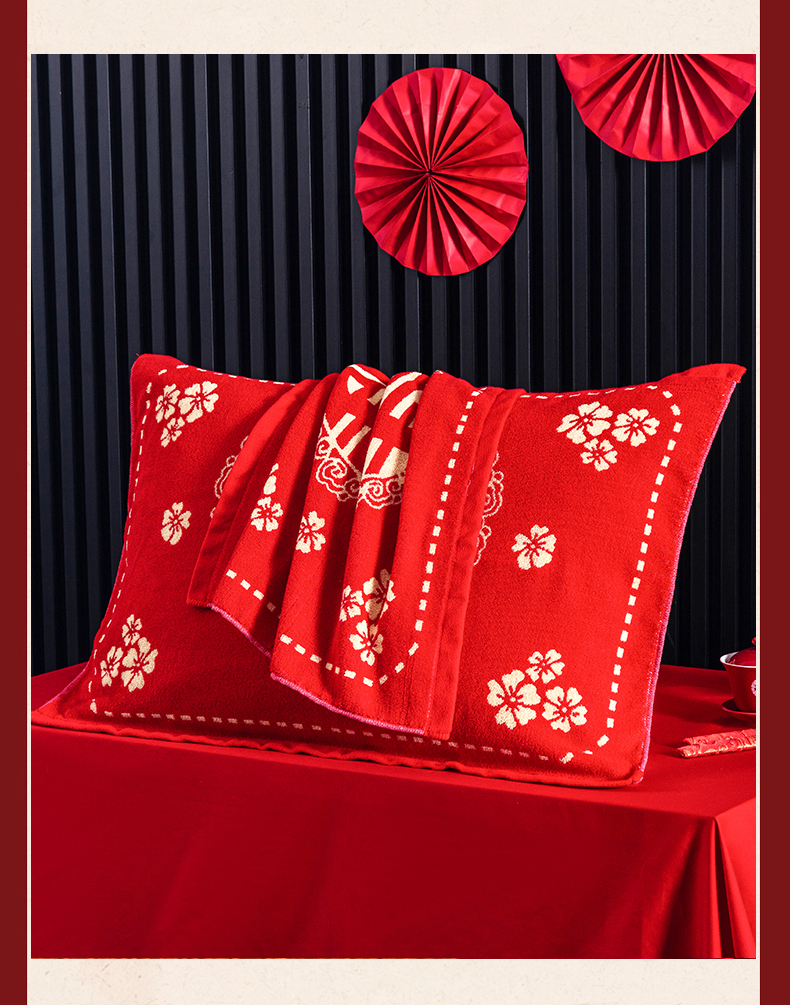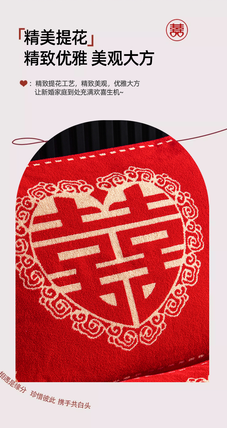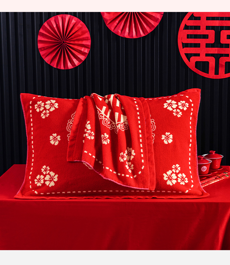 商品名称:美宜家 2025新款全棉毛圈防滑隔脏婚庆老式全棉枕巾 喜上加喜