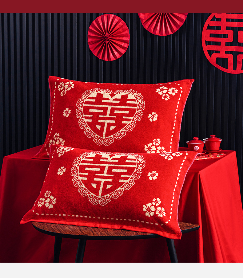 美宜家 2025新款全棉毛圈防滑隔脏婚庆老式全棉枕巾 喜上加喜