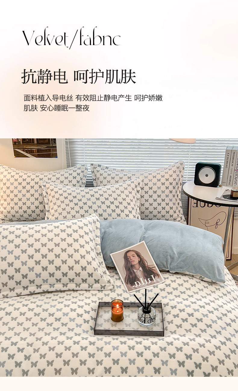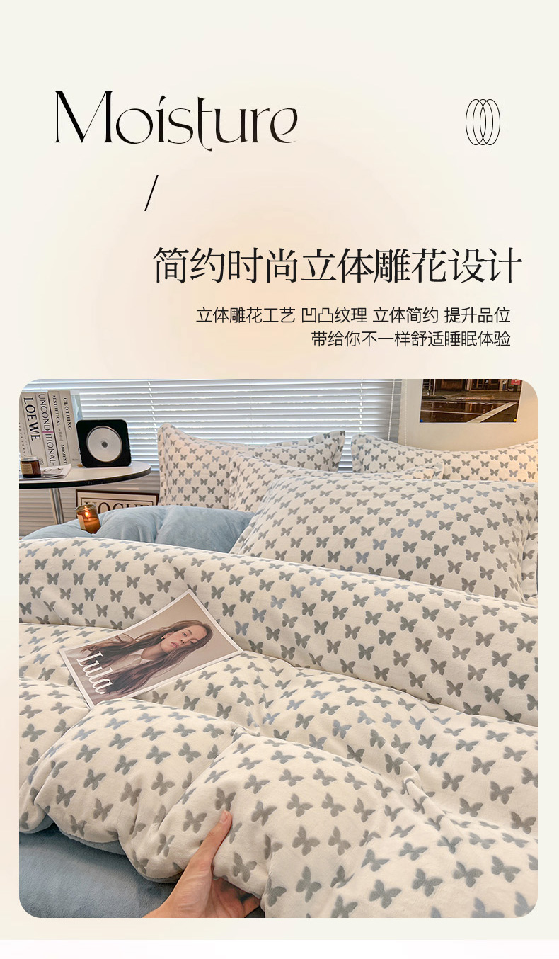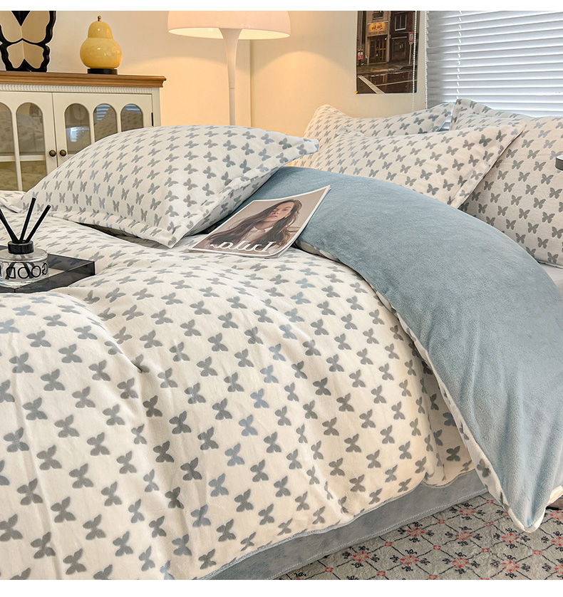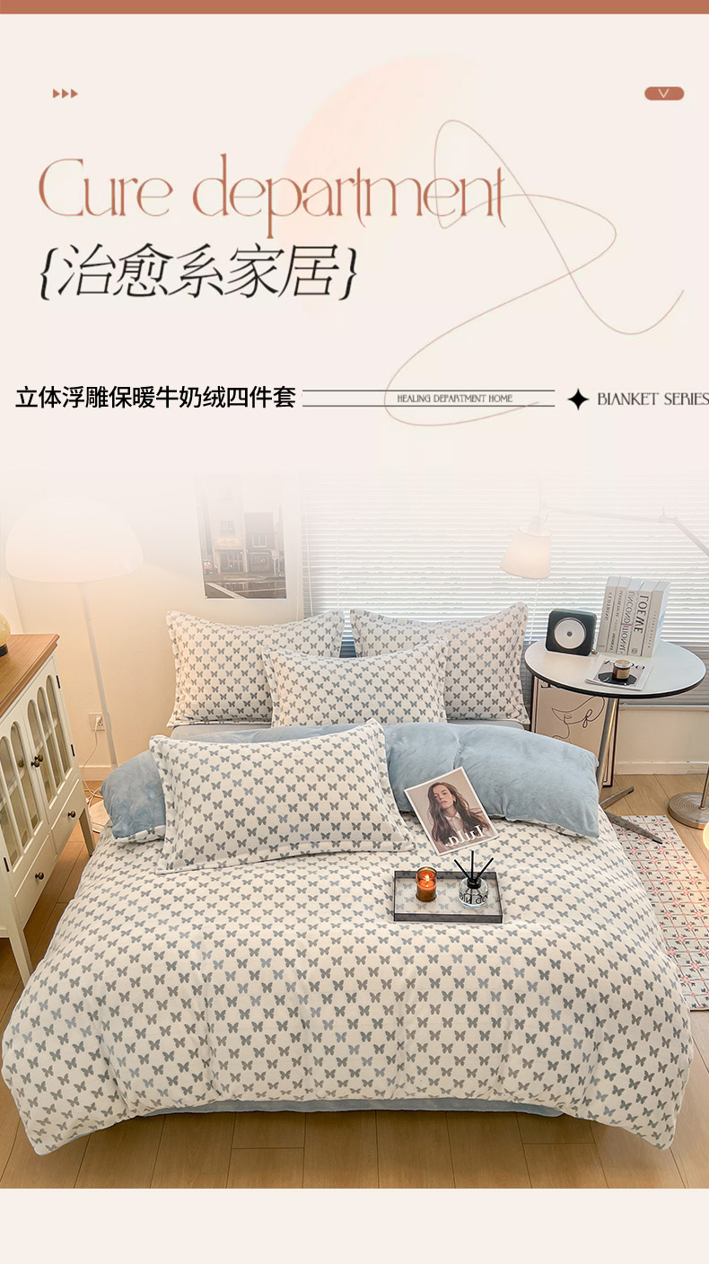 当前位置: 91家纺网 > 商品网购 > 床品套件 > 四件套 > 其它四件套 > 倾慕家纺 2026新款舒适保暖立体浮雕绒系列四件套 彩蝶蓝