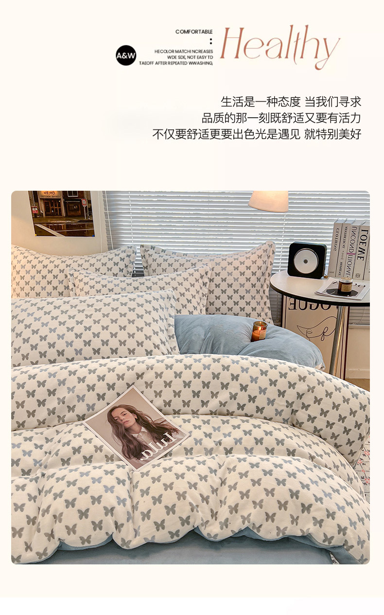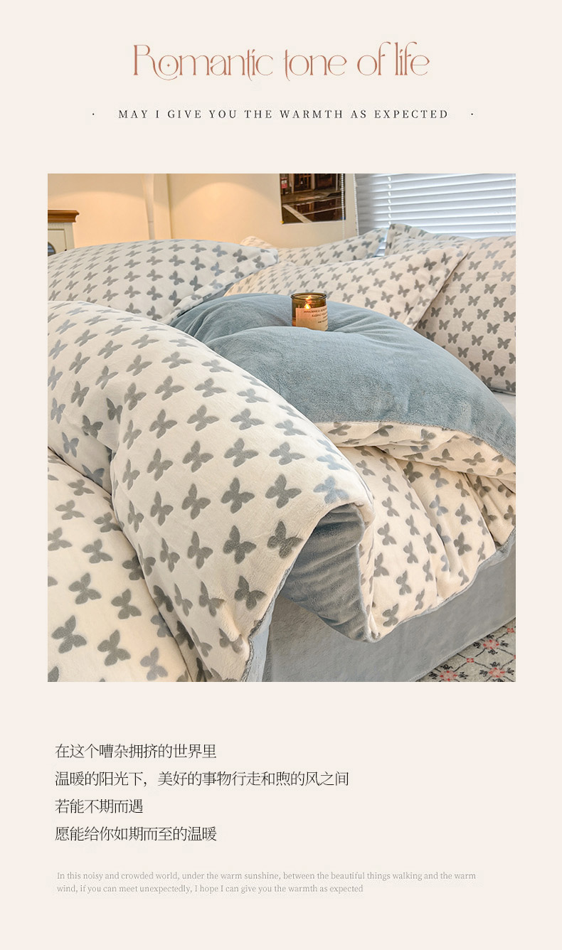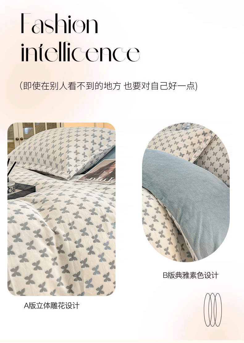 当前位置: 91家纺网 > 商品网购 > 床品套件 > 四件套 > 其它四件套 > 倾慕家纺 2026新款舒适保暖立体浮雕绒系列四件套 彩蝶蓝
