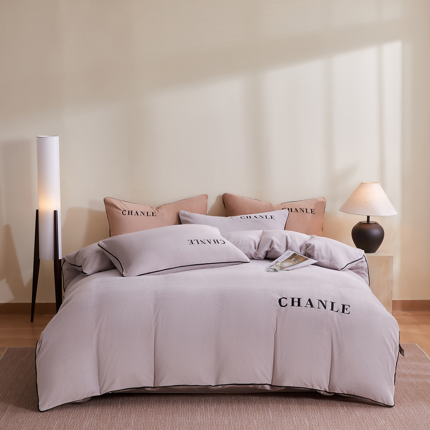 (总)锦禾穗 2025新款240克全消光母婴A类牛奶绒刺绣四件套-莫妮,粉色,灰色,橘色,卡其色,米白色,紫色