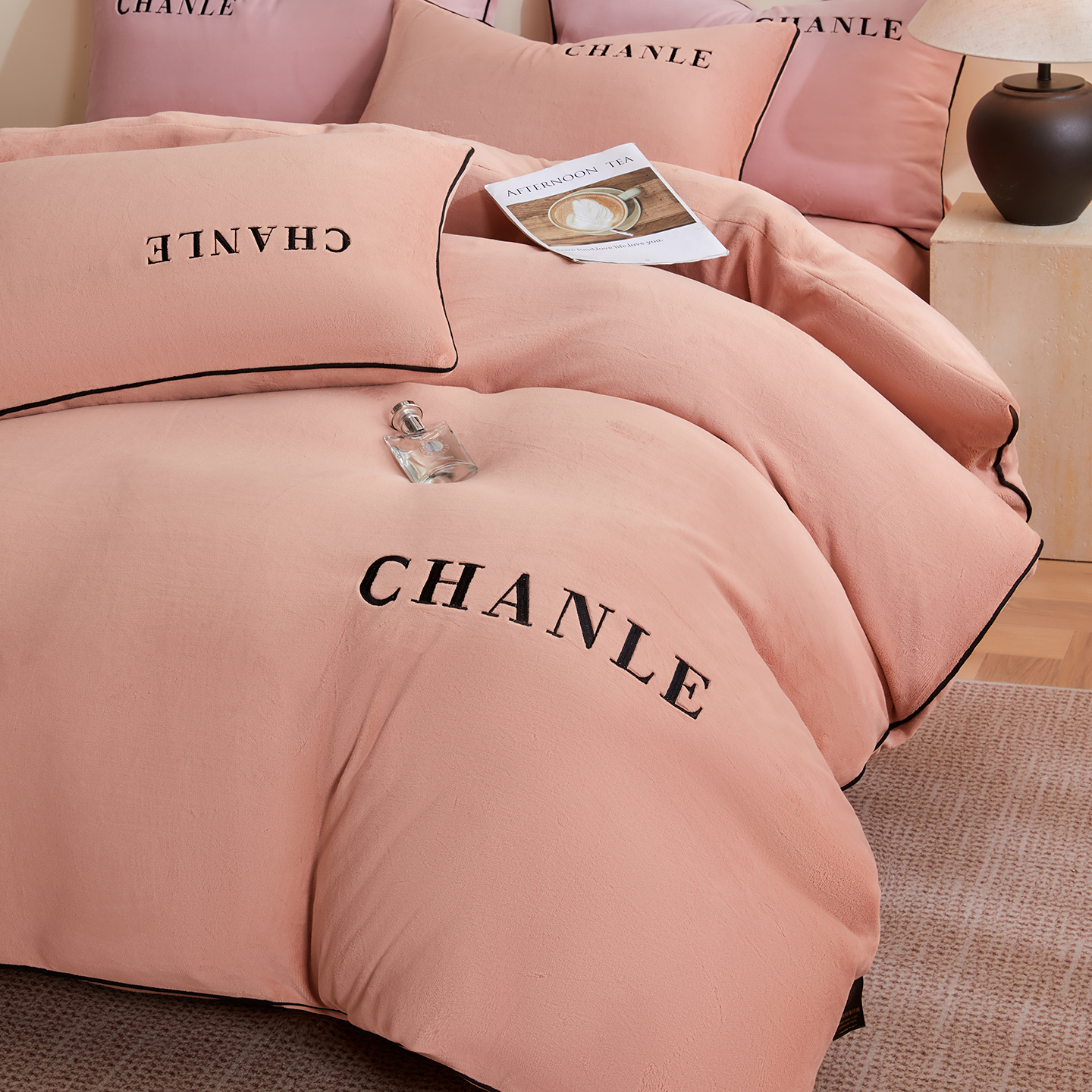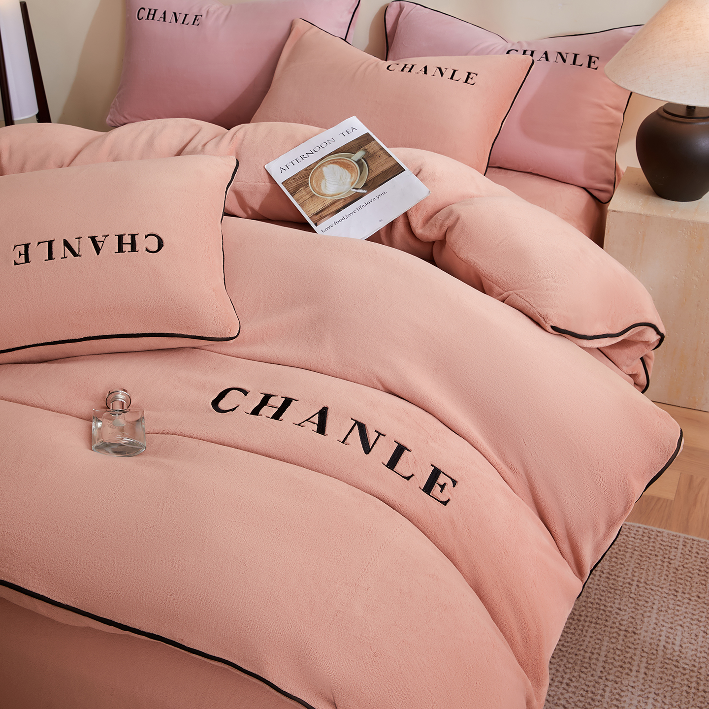 锦禾穗 2023新款牛奶绒四件套-丹麦貂 慕倾-粉色,慕倾-粉色