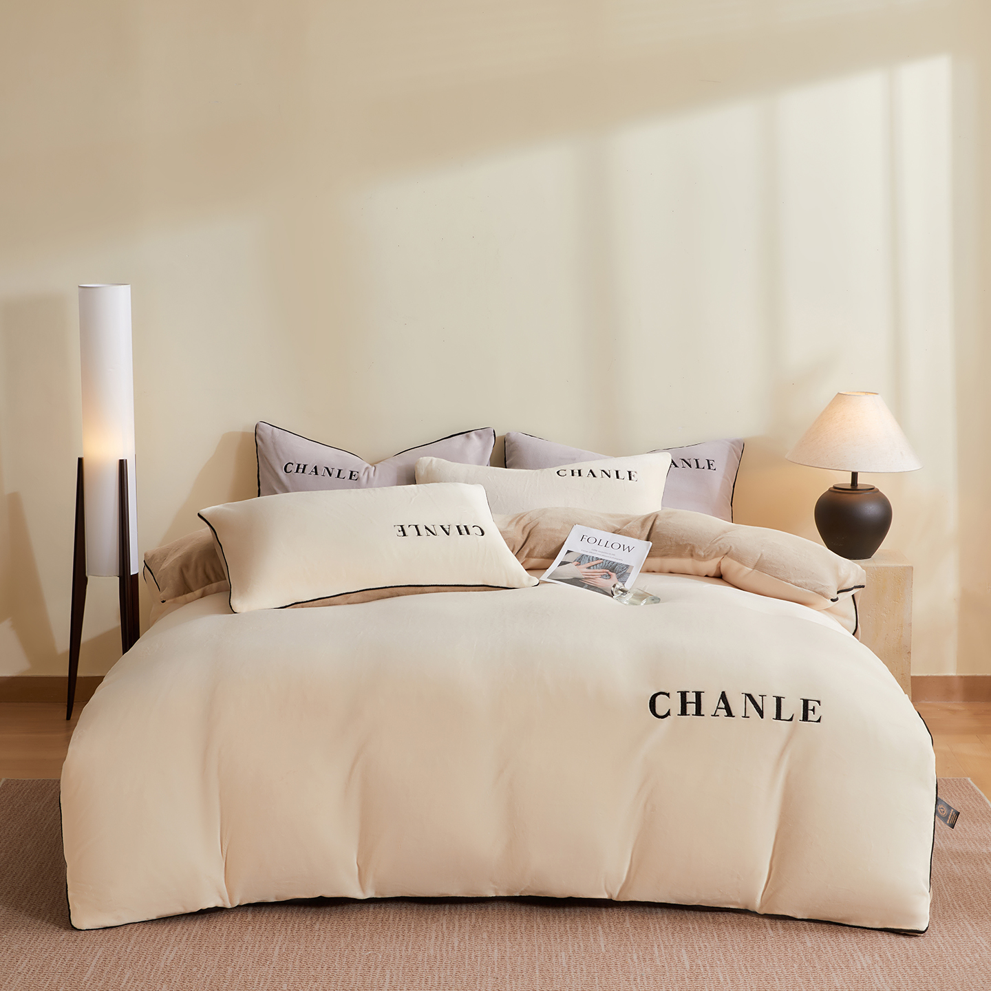 (总)锦禾穗 2024新款泰迪绒牛奶绒四件套,淡奶,粉色,灰色,咖色,绿色,米白,紫色