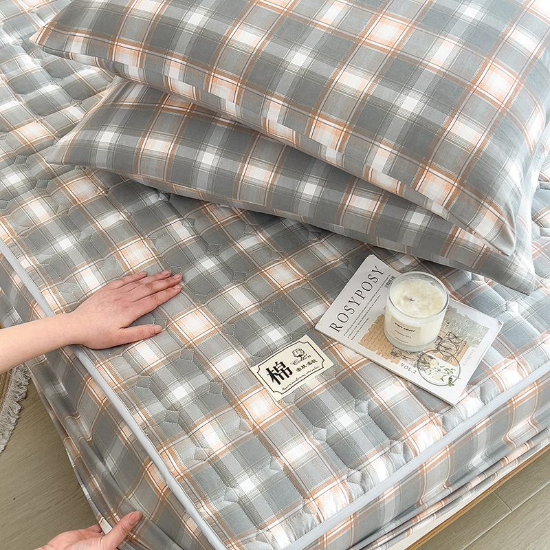 (总)蕾诺家纺 2025新款色织水洗棉棉花夹棉床笠保护套