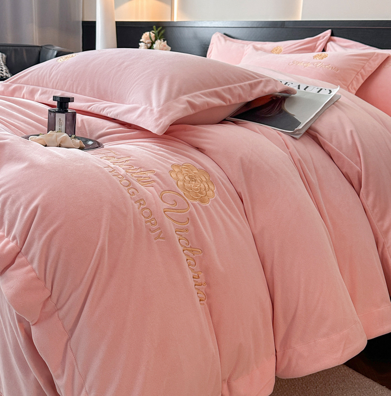 鸿织源家纺 2025新款230g全消光牛奶绒刺绣四件套 豆沙,豆沙