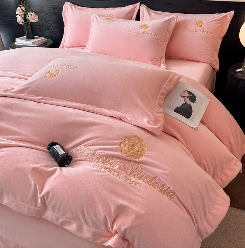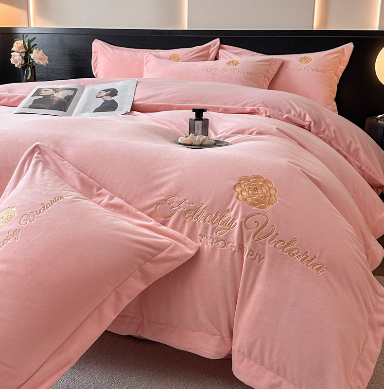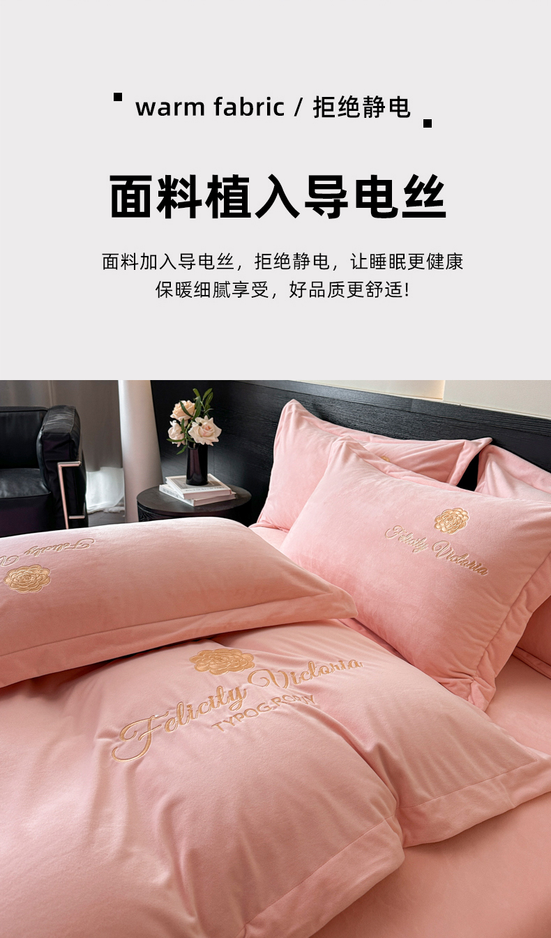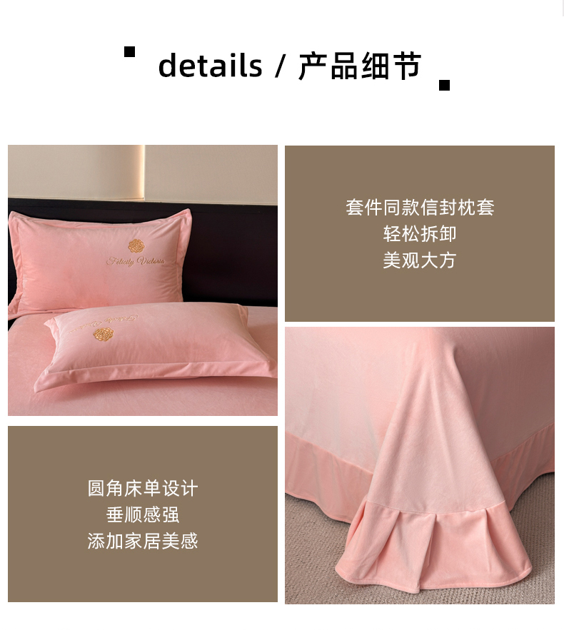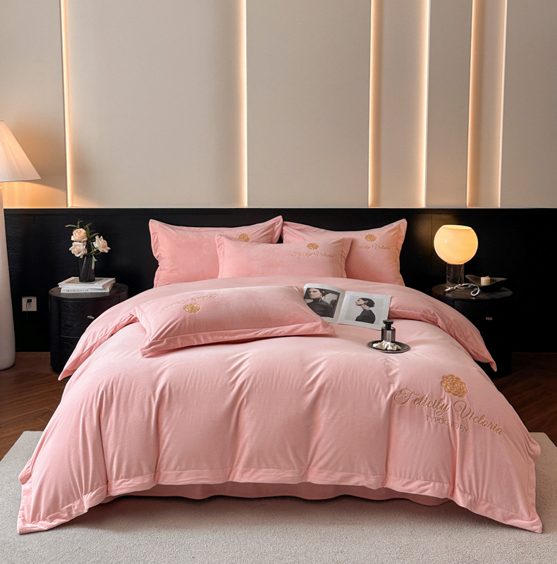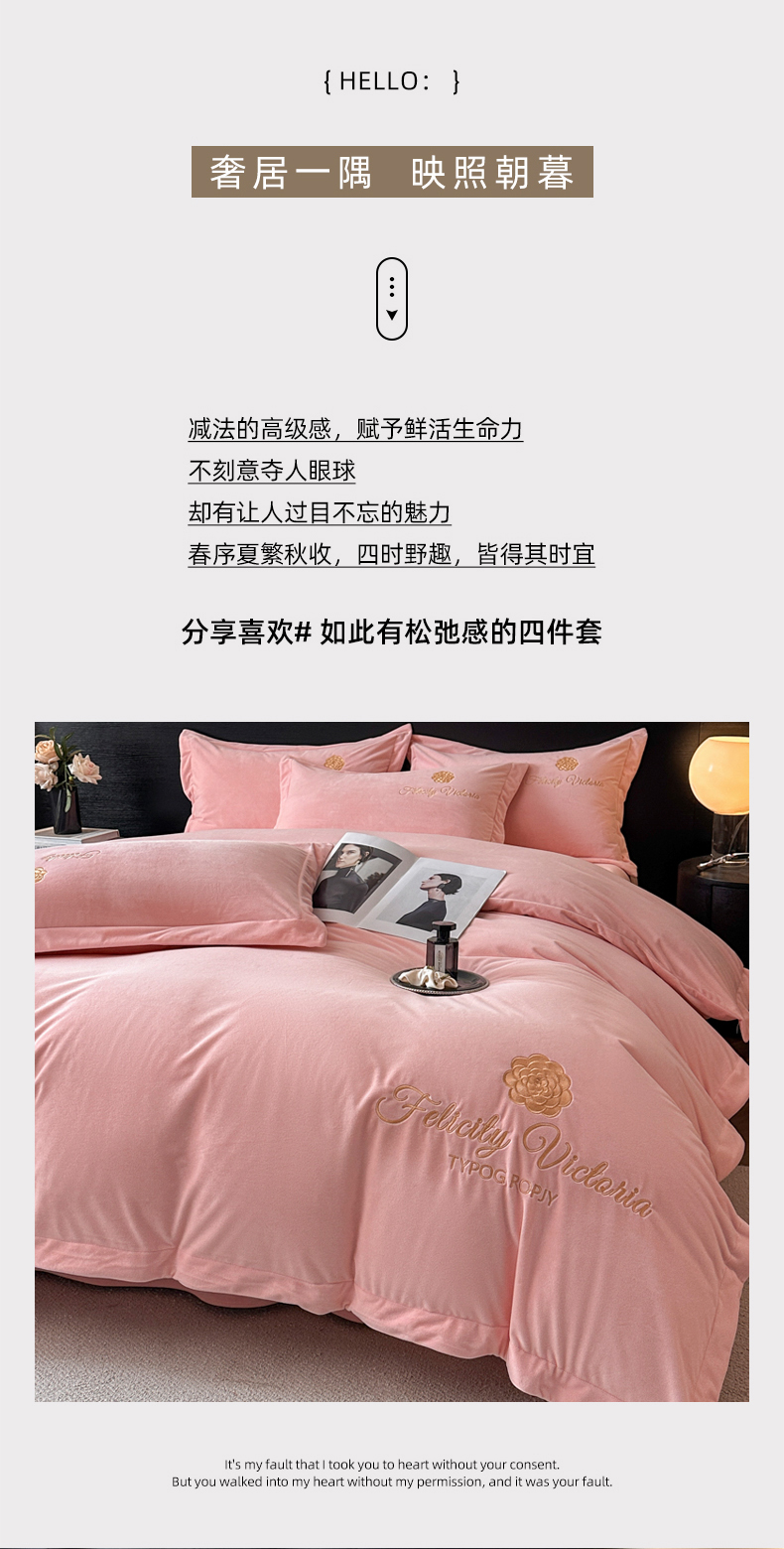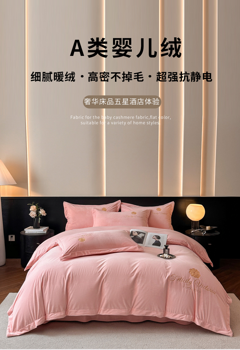 鸿织源2025新款-茶颜系列 宝宝绒宽边四件套 茶颜-樱粉