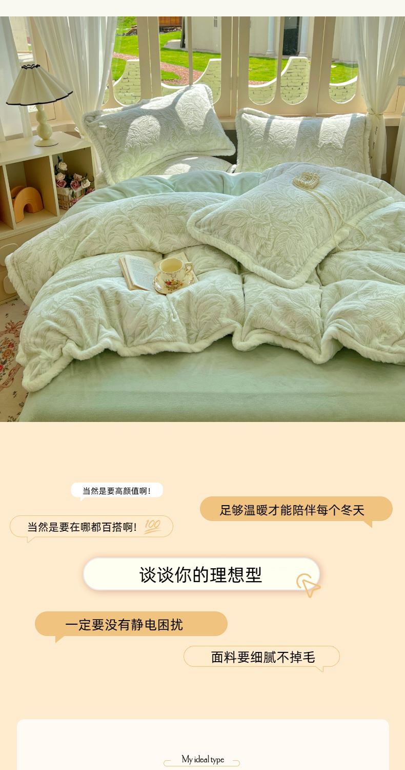 当前位置: 91家纺网 > 商品网购 > 床品套件 > 四件套 > 牛奶绒四件套 > Mata蔓塔家 2025新款小清新牛奶绒雕花兔毛绒包边四件套 墨花如梦