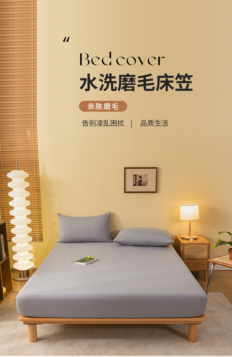 商品名称:梵克保罗 2025新款简约纯色亲肤磨毛床笠 浅灰