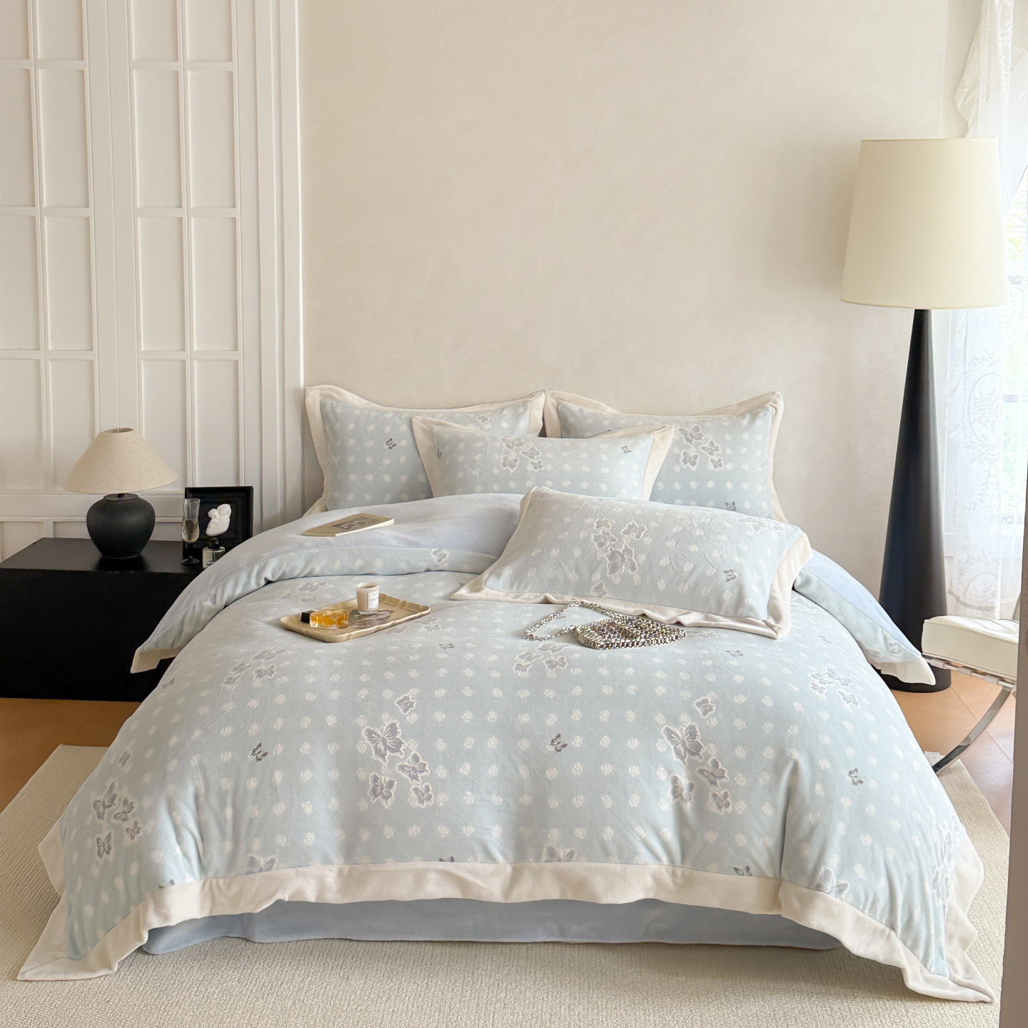 (总)若未家居 LOVEWE HOUSE 2025新款蝴蝶风仿真貂绒床盖四件套A版400克B版260克-月光女神,月光女神 米杏,月光女神 星空灰
