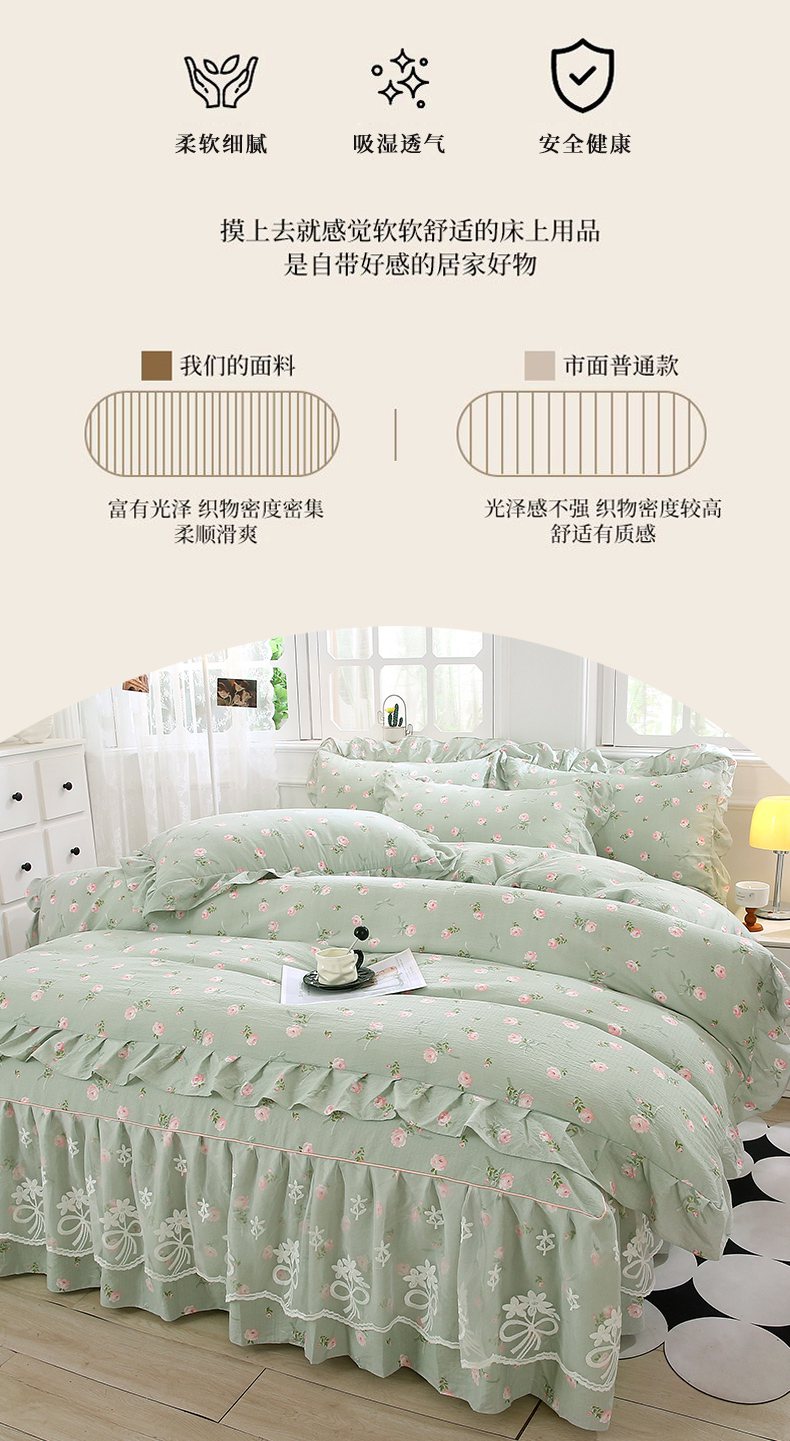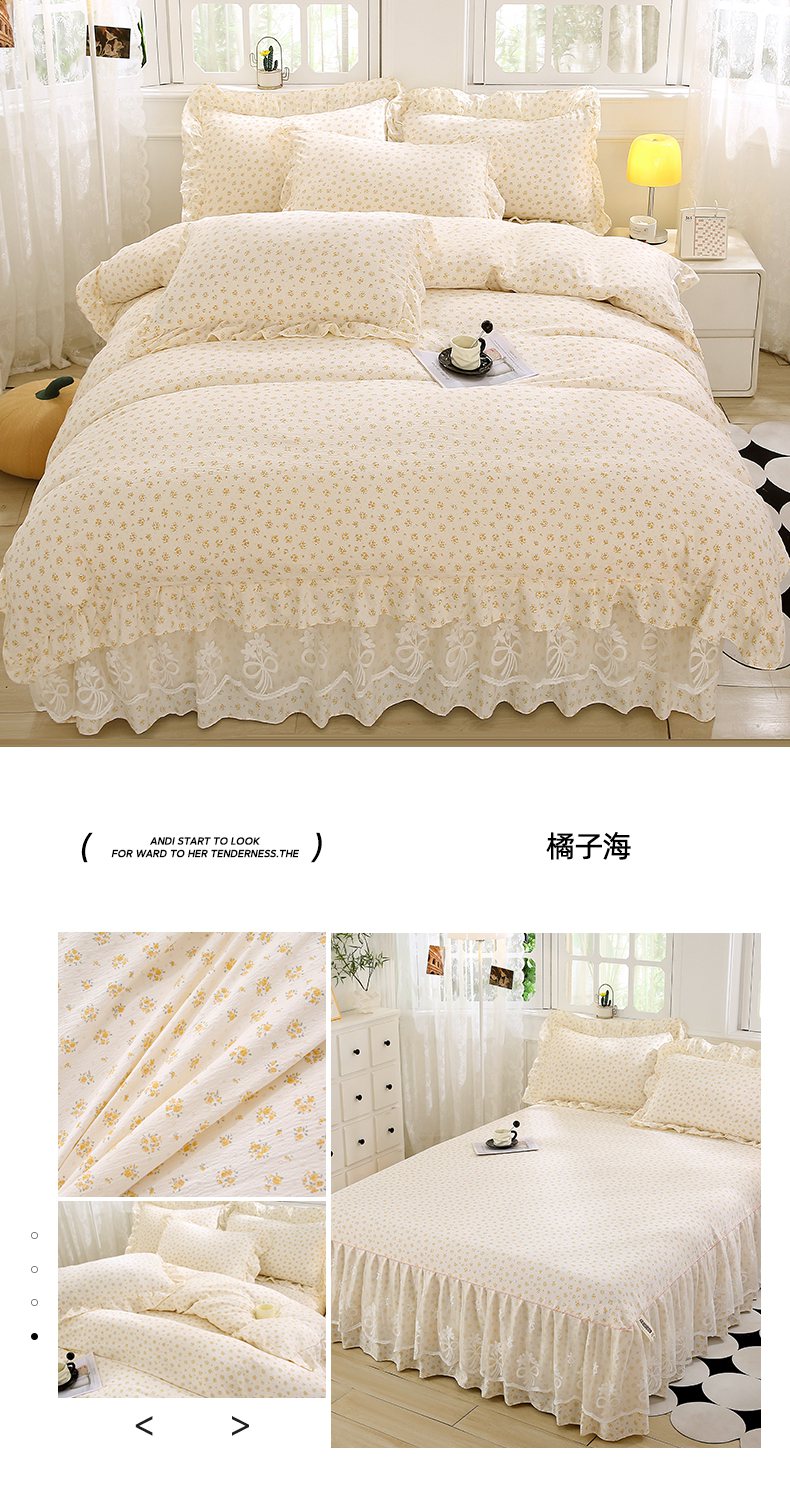 当前位置: 91家纺网 > 商品网购 > 床品套件 > 四件套 > 其它四件套 > 梵克保罗 2025新款双层纱蕾丝花边床裙四件套 栀子海
