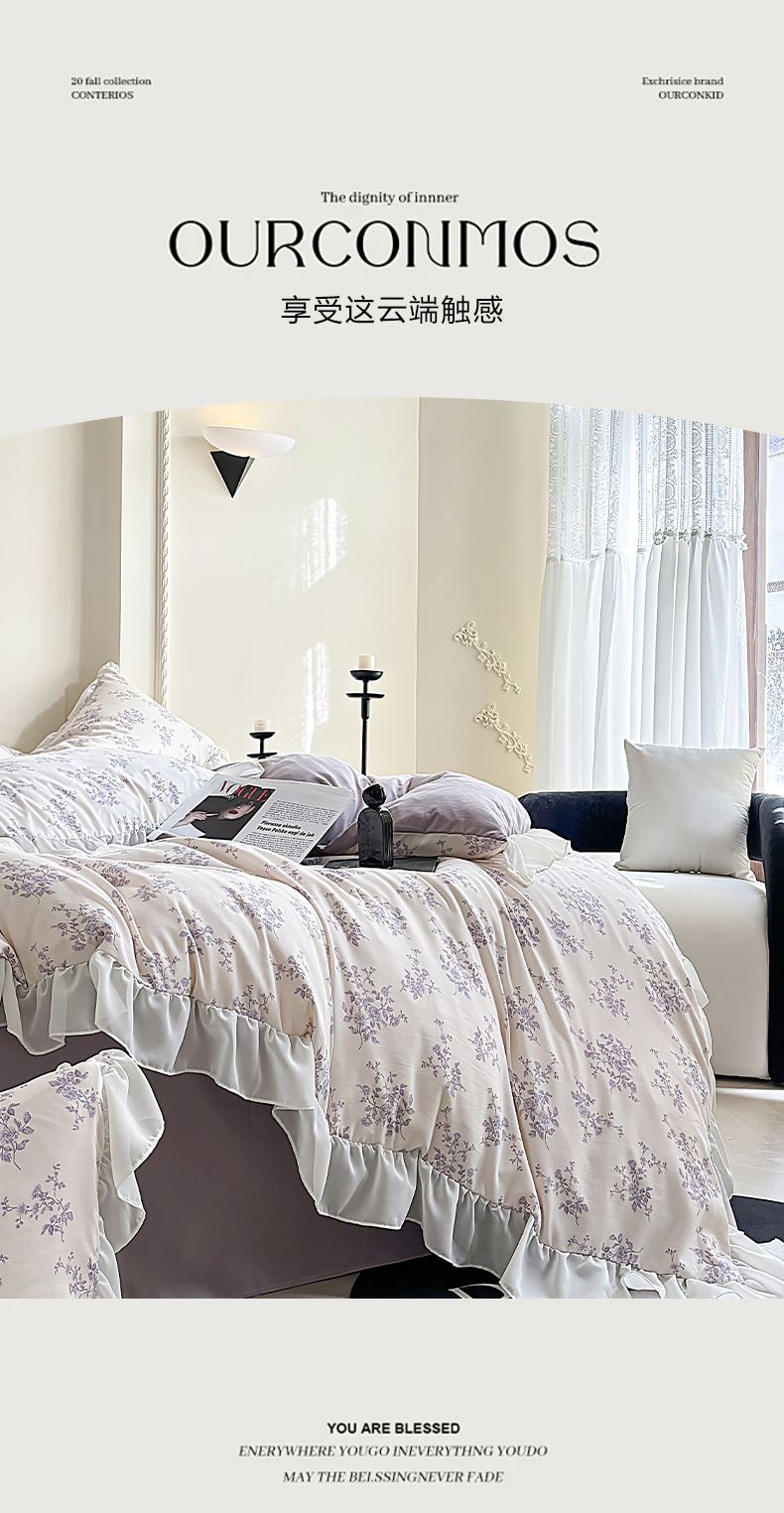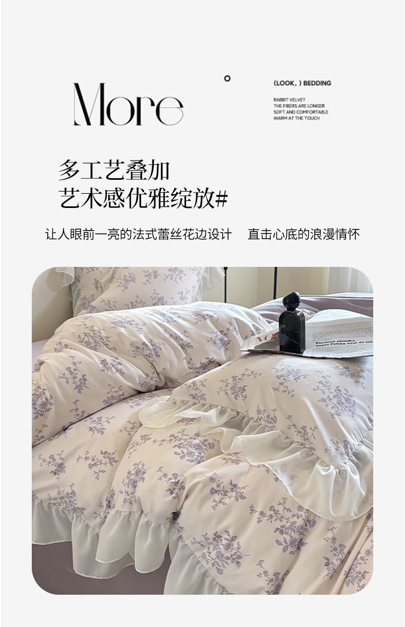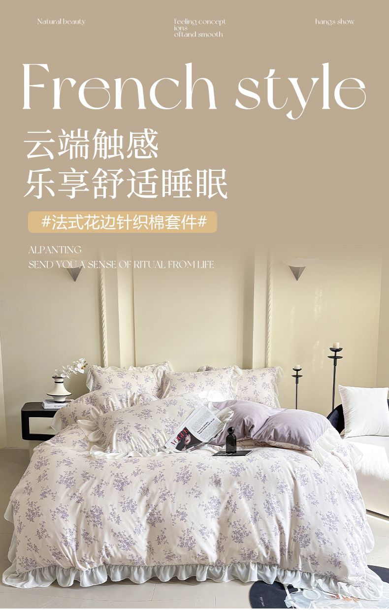 当前位置: 91家纺网 > 商品网购 > 床品套件 > 四件套 > 针织棉四件套 > 梵克保罗 2025新款法式大花边针织棉四件套 紫黛