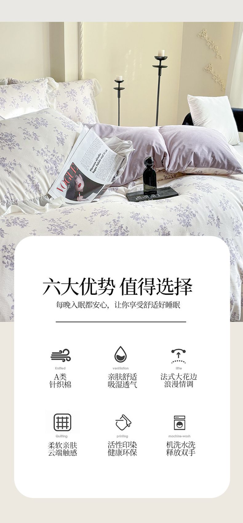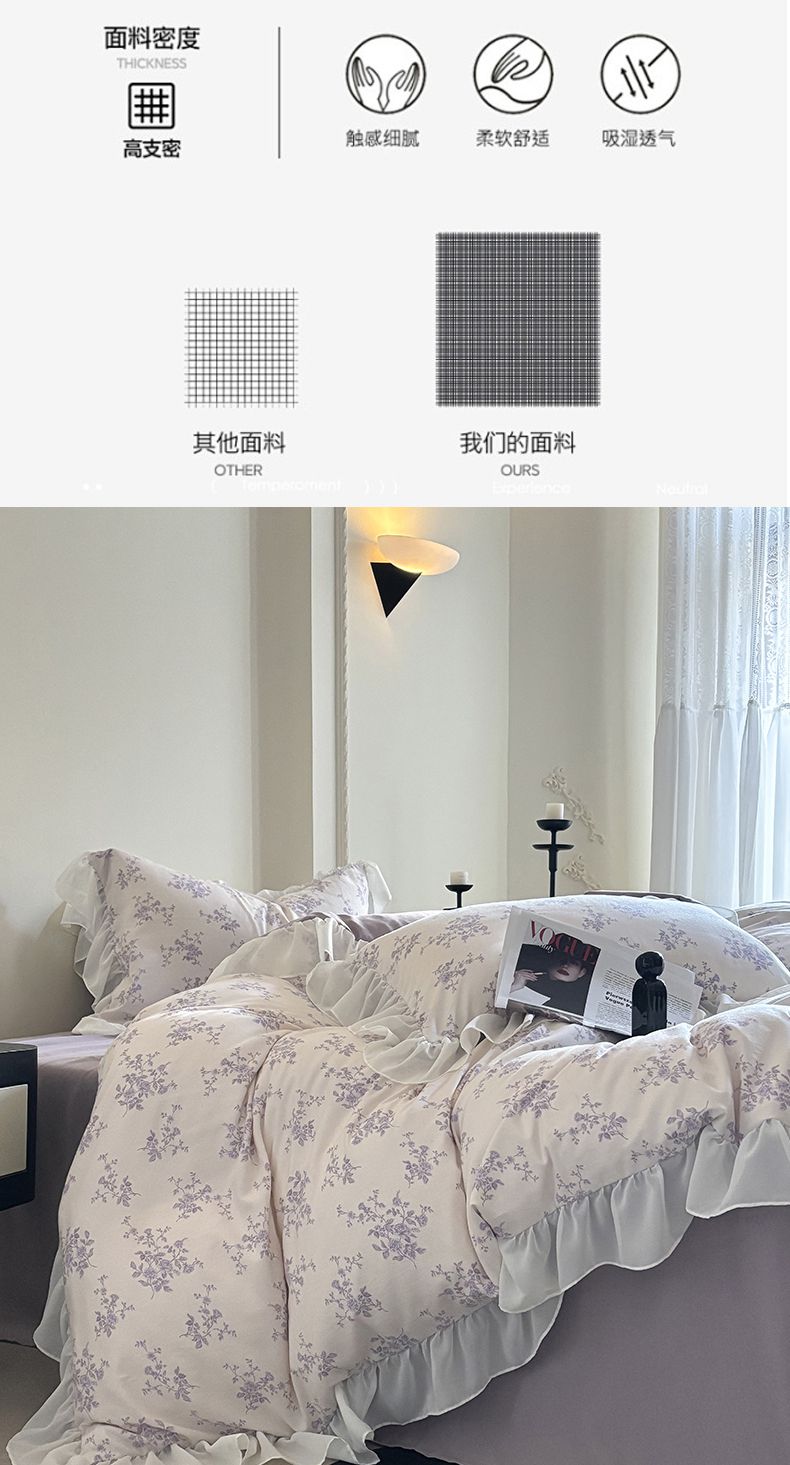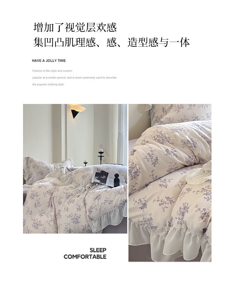 当前位置: 91家纺网 > 商品网购 > 床品套件 > 四件套 > 针织棉四件套 > 梵克保罗 2025新款法式大花边针织棉四件套 紫黛