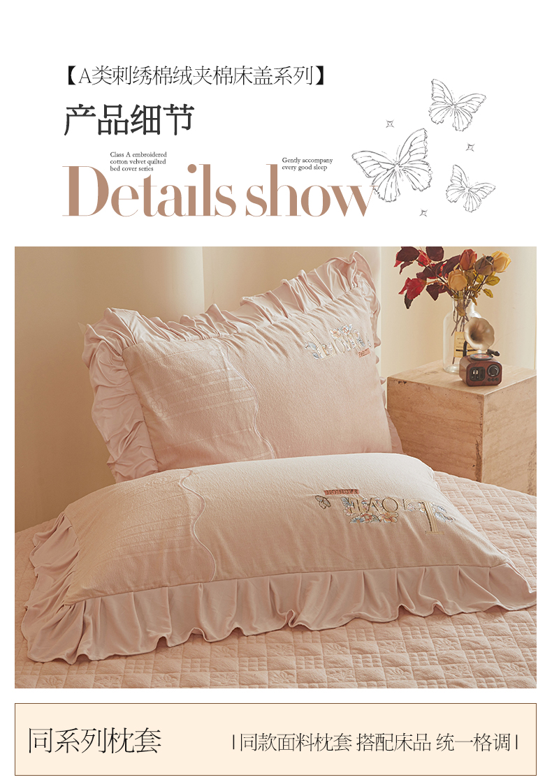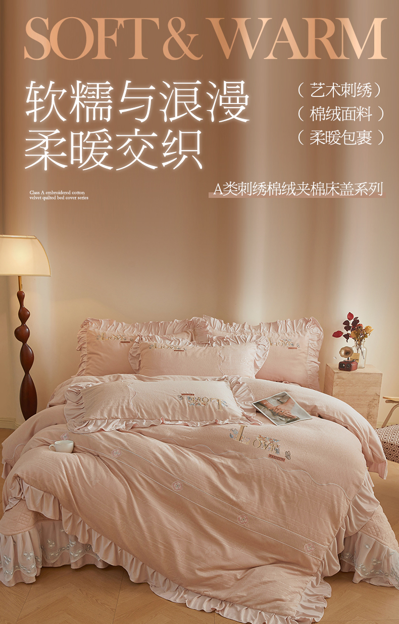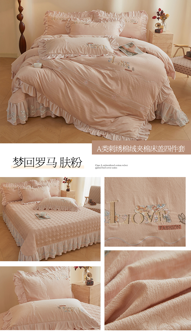 商品名称:宜凡家纺 2025新款A类棉绒刺绣花夹棉床盖四件套--梦回罗马 梦回罗马 肤粉