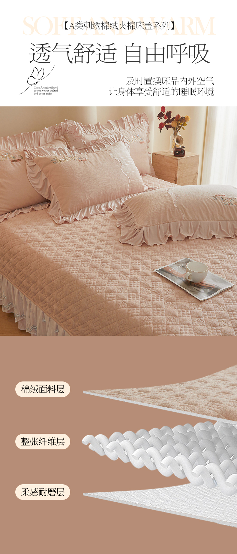 宜凡家纺 2025新款A类棉绒刺绣花夹棉床盖四件套--梦回罗马 梦回罗马 肤粉