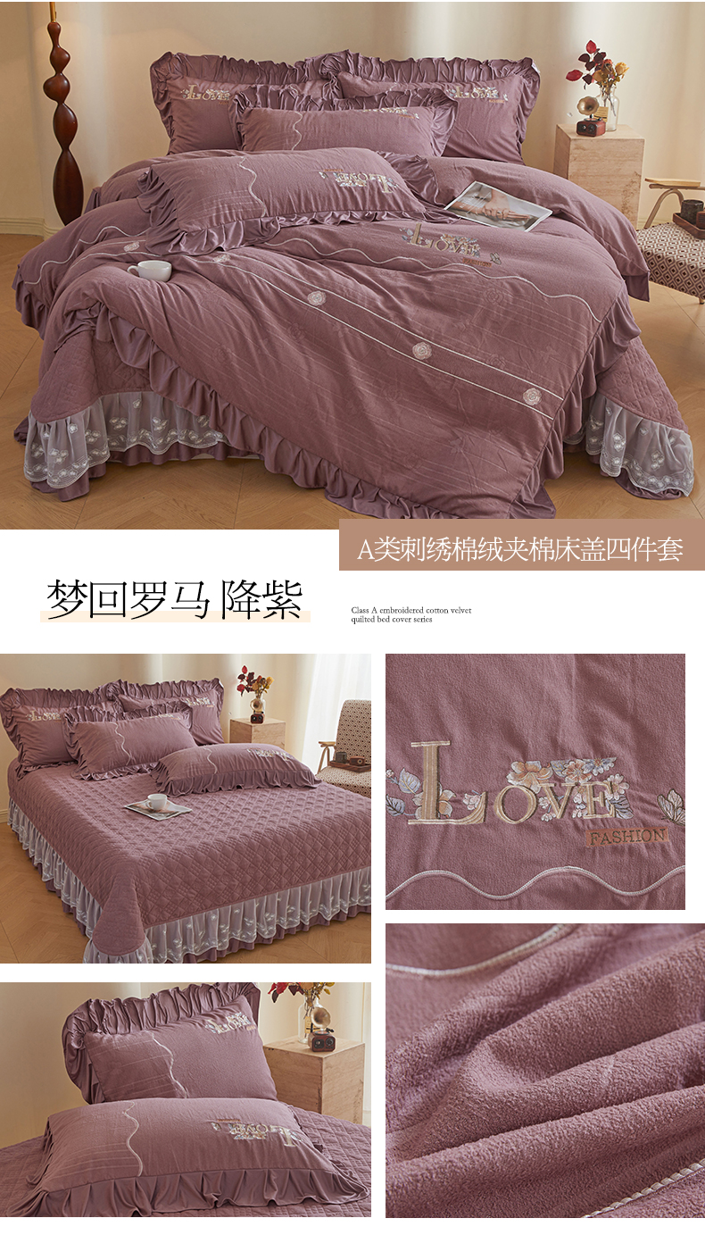 (总)宜凡家纺 2025新款兔绒提花牛奶绒夹棉床盖四件套,爱心 粉紫,爱心 少女粉,爱心 驼色,蝶舞 大红,蝶舞 米色,蝶舞 浅紫,蝶舞 玉色,简爱 苍青,简爱 豆沙紫,简爱 玉色,樱桃 苍青,樱桃 豆沙紫,樱桃 奶油白