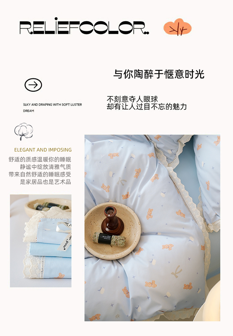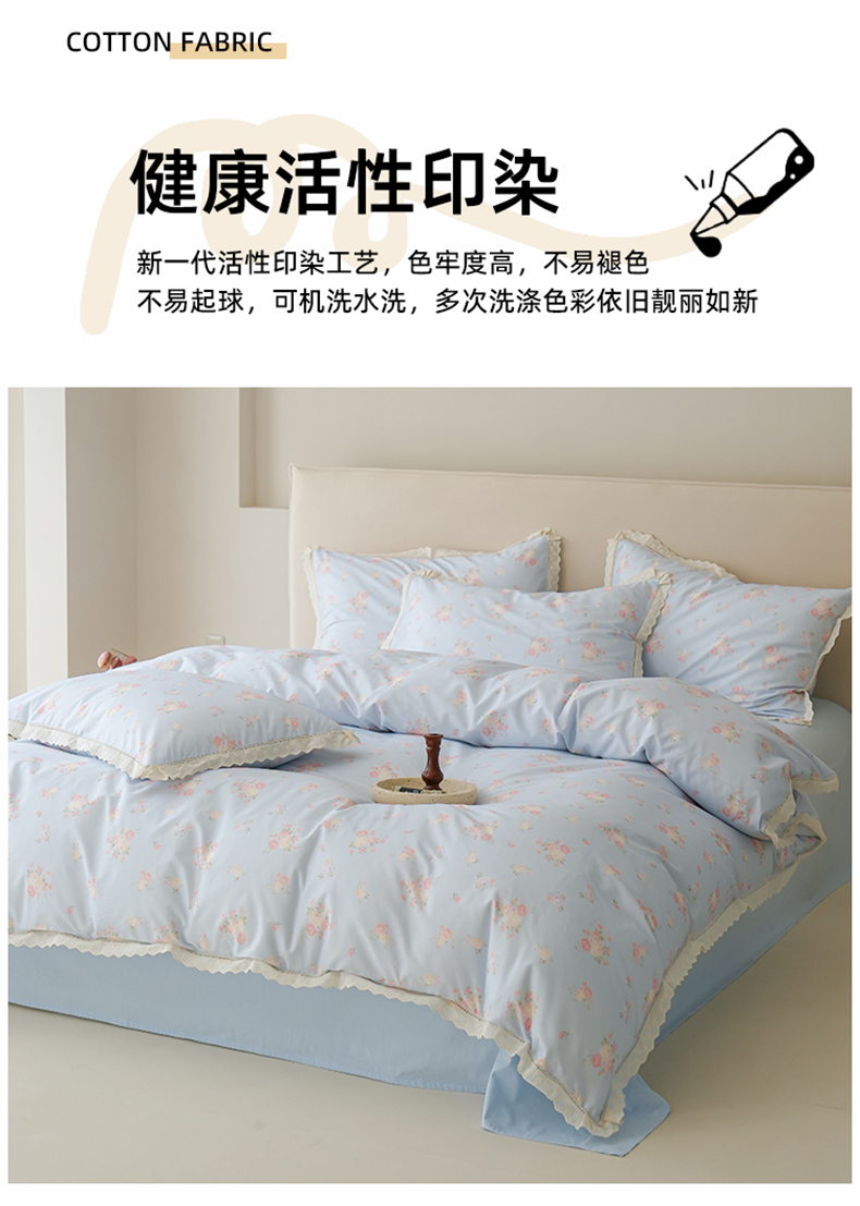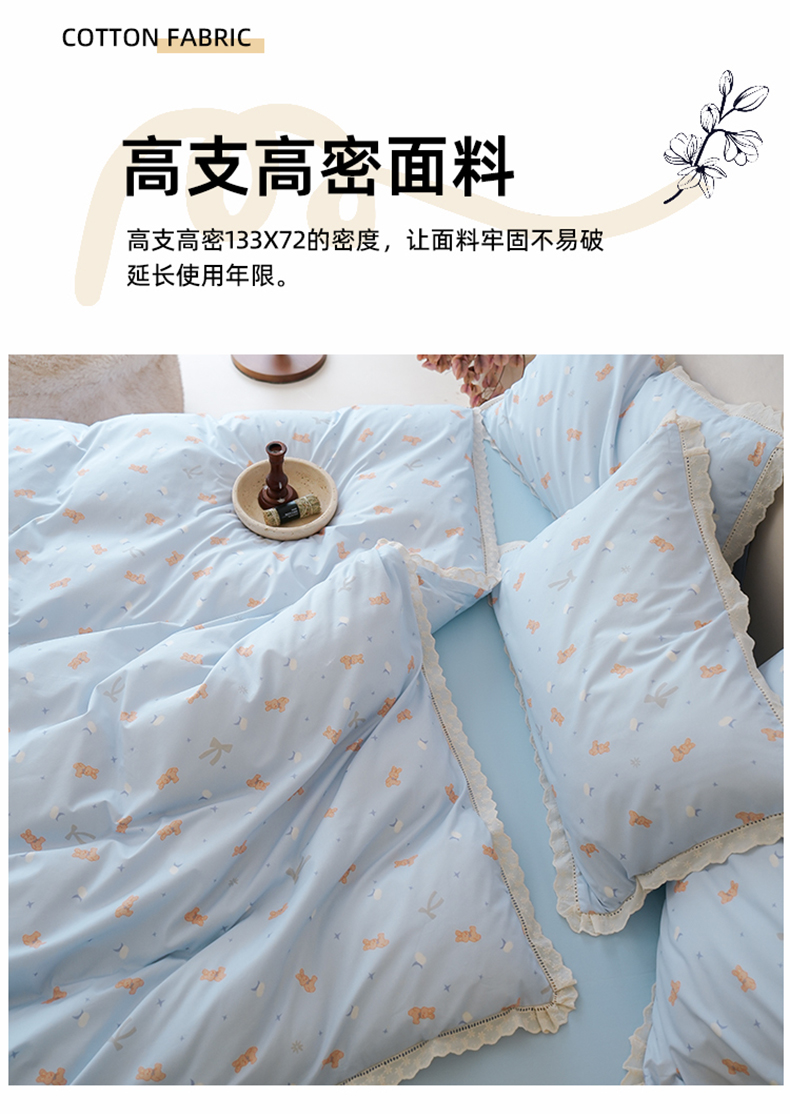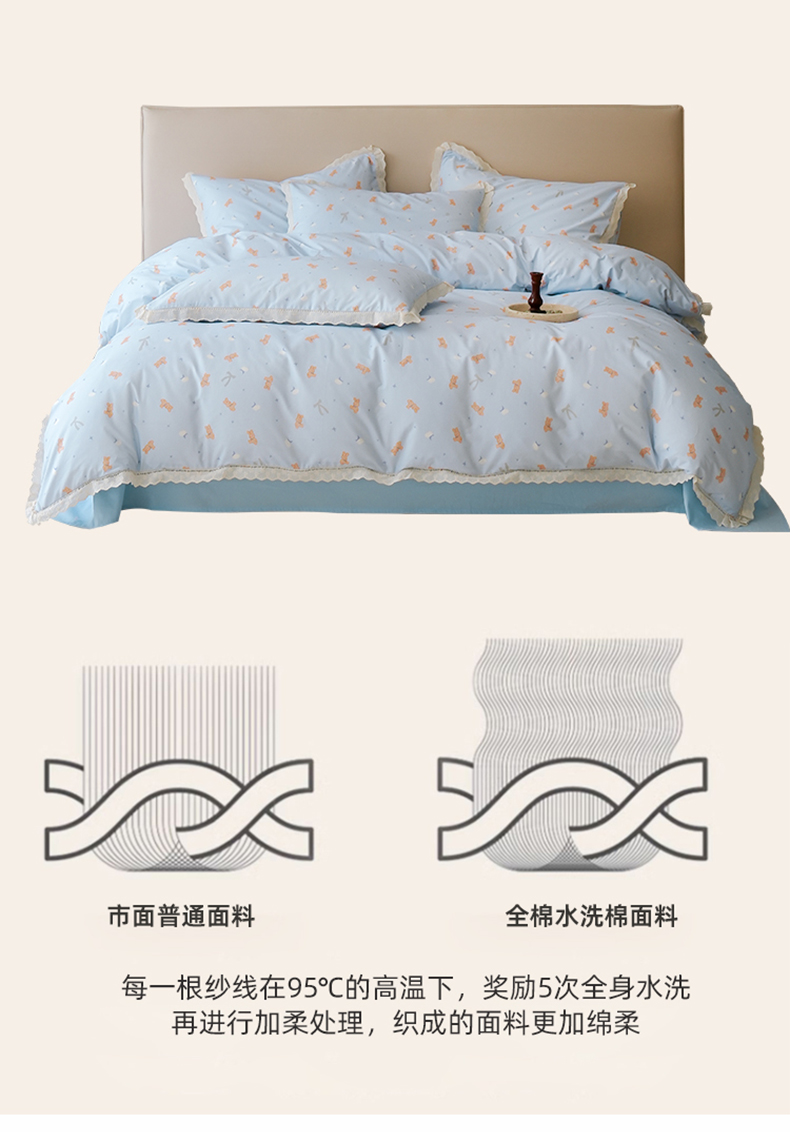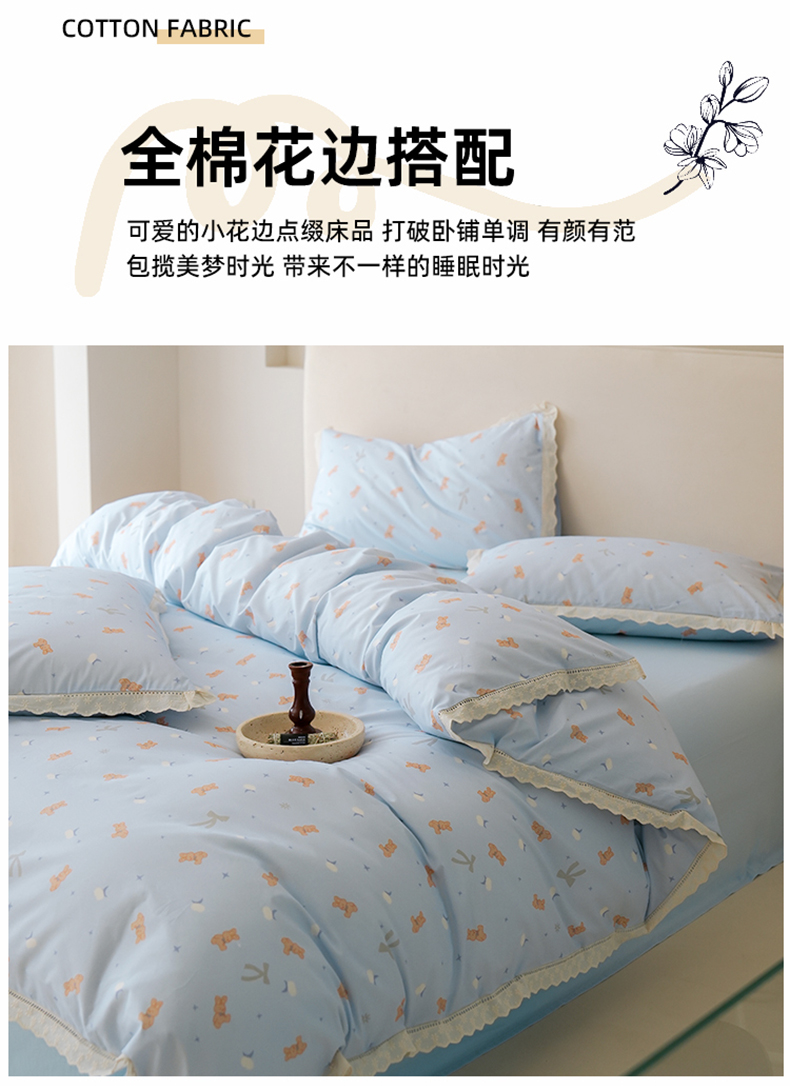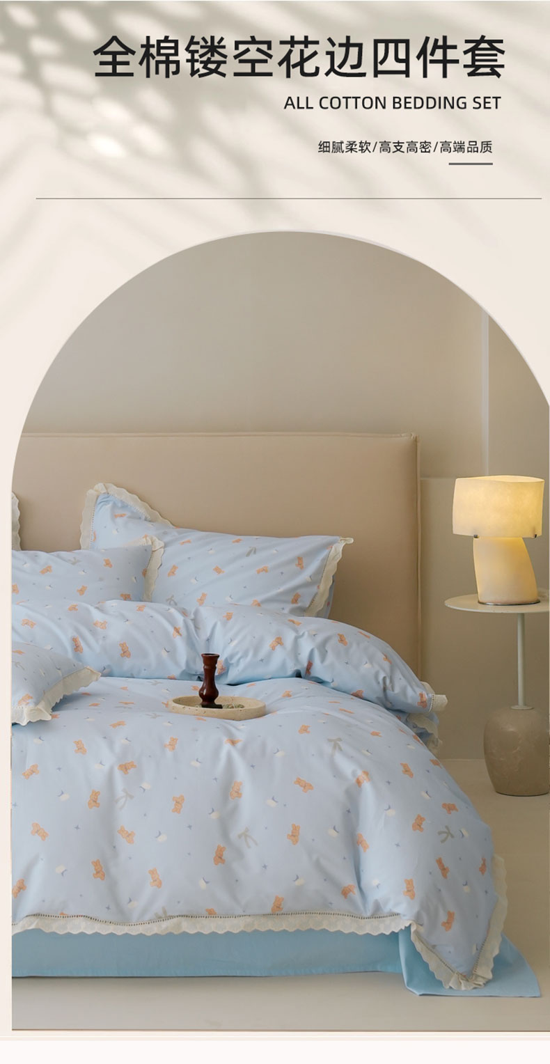 商品名称:洺兰家居 2025年小清新全棉13372镂空花边小碎花ins风水洗棉四件套 安妮兔
