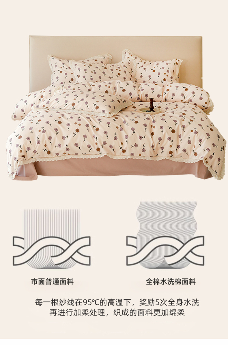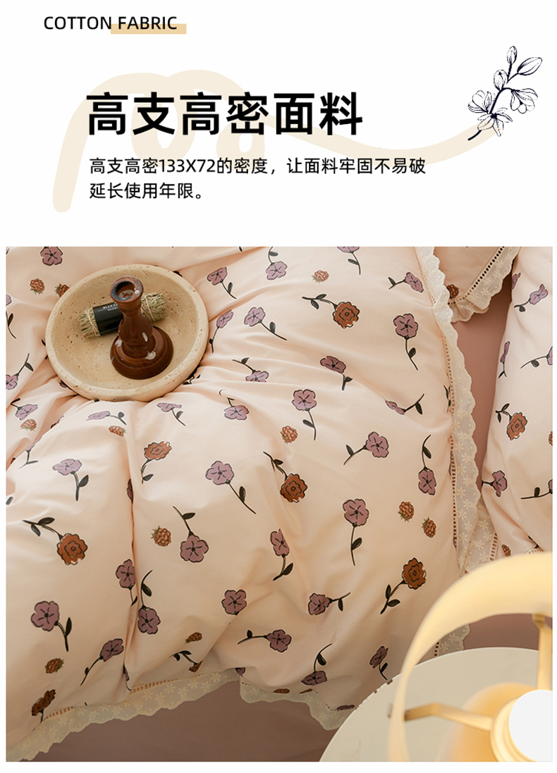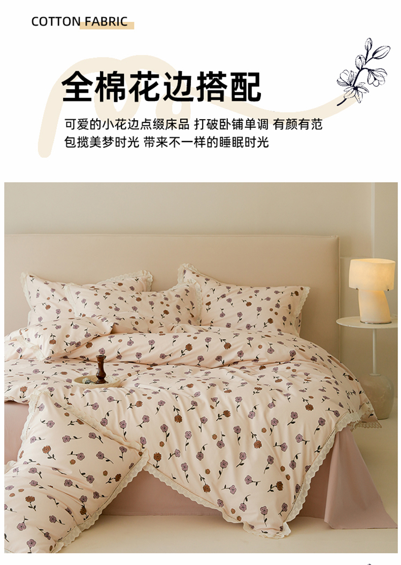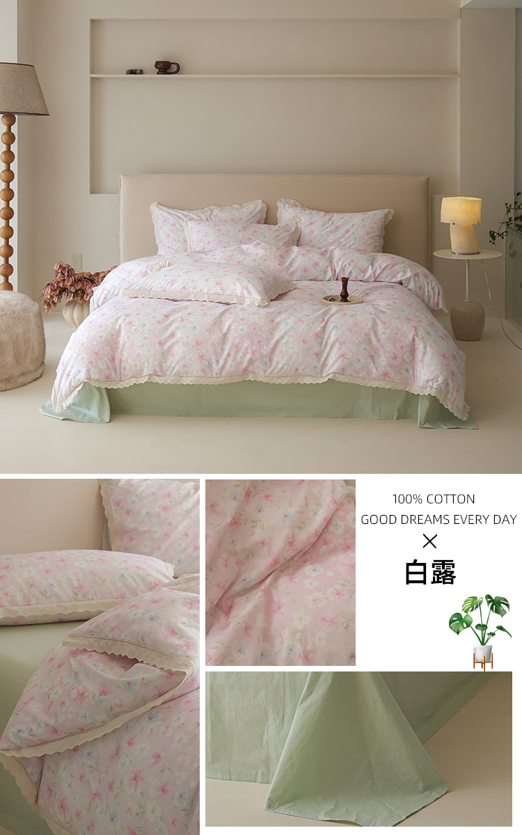 商品名称:洺兰家居 2025年小清新全棉13372镂空花边小碎花ins风水洗棉四件套 寒梅