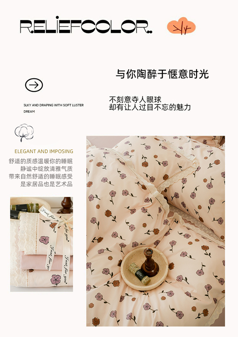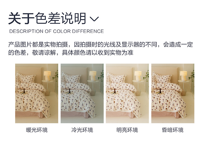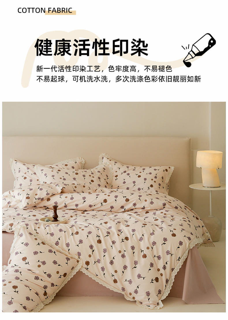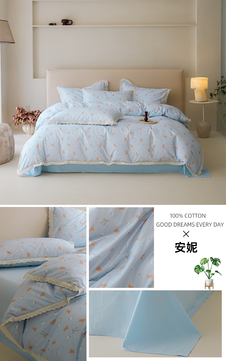 商品名称:洺兰家居 2025年小清新全棉13372镂空花边小碎花ins风水洗棉四件套 寒梅