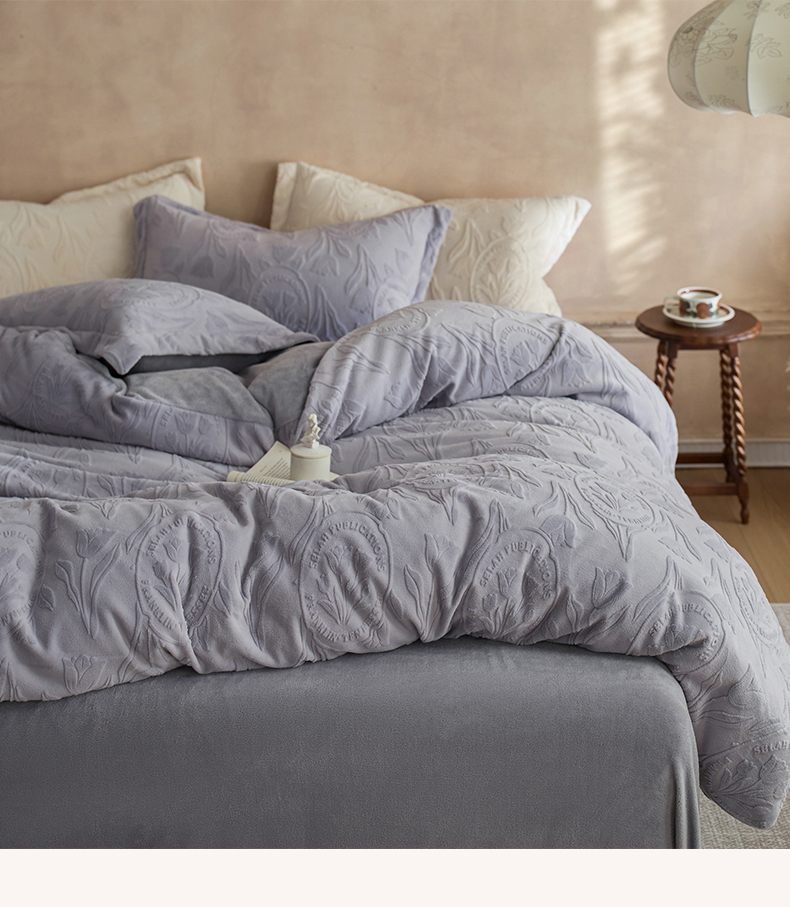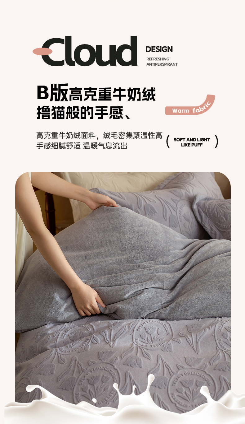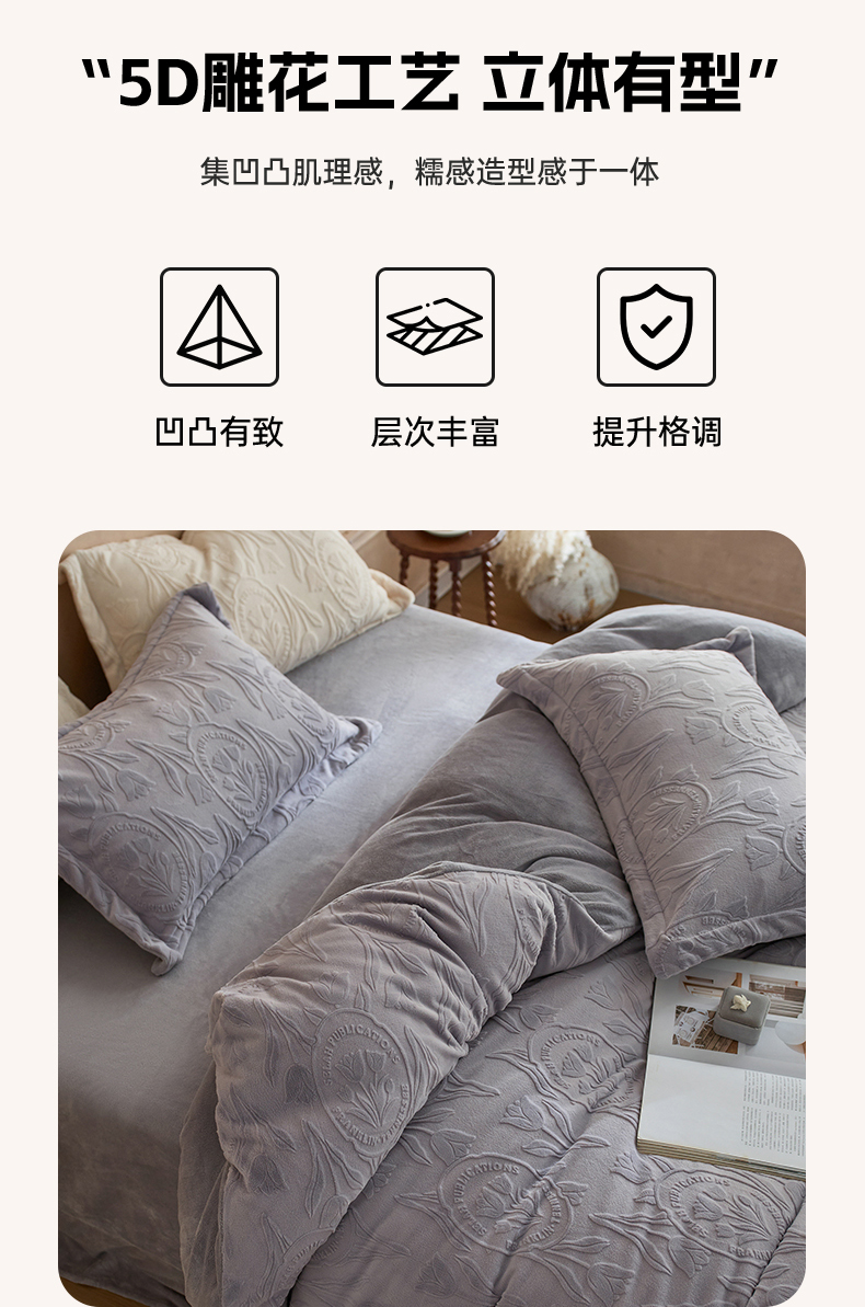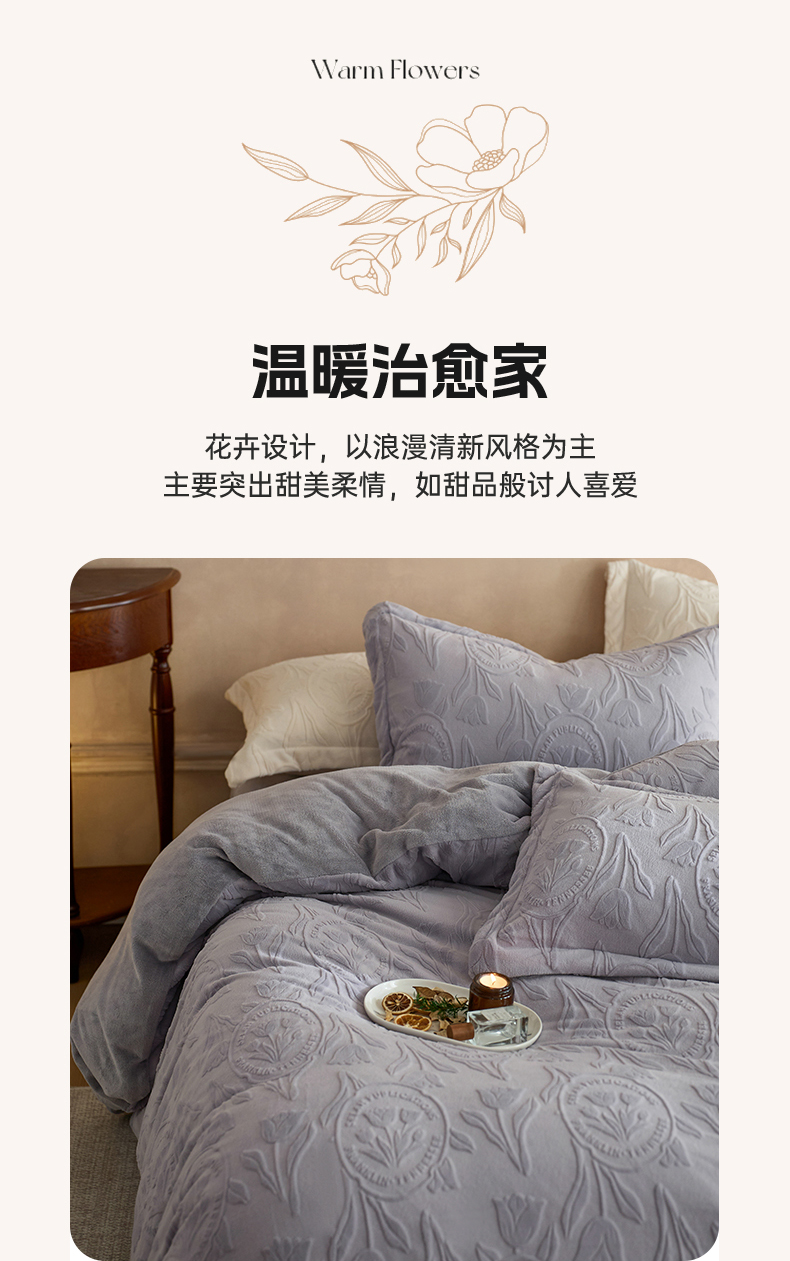 当前位置: 91家纺网 > 商品网购 > 床品套件 > 四件套 > 牛奶绒四件套 > 亿梵家居 2025秋冬新款A类全消光牛奶绒立体5D雕花绒四件套-风格一 (提供买家秀) 郁金香-香芋紫