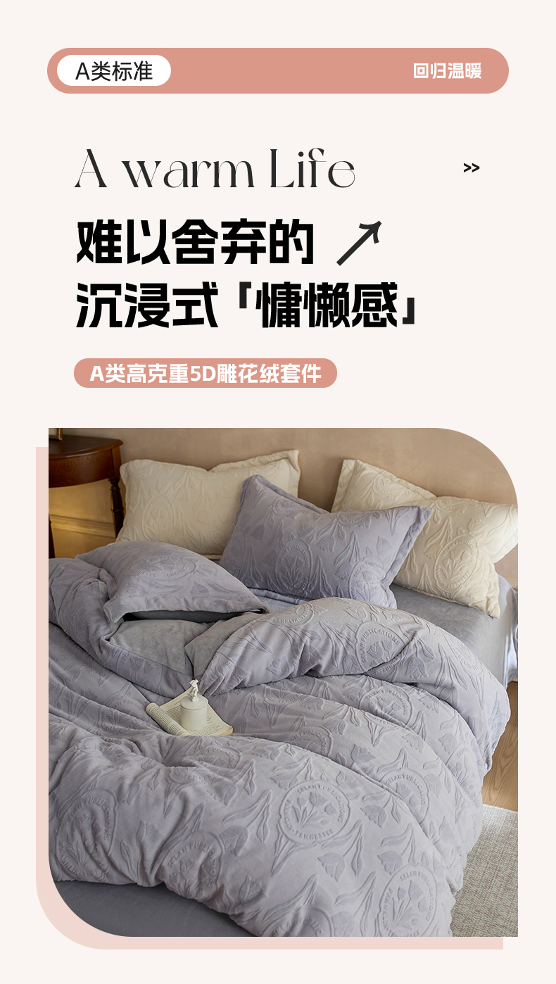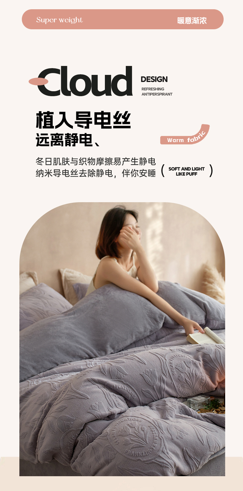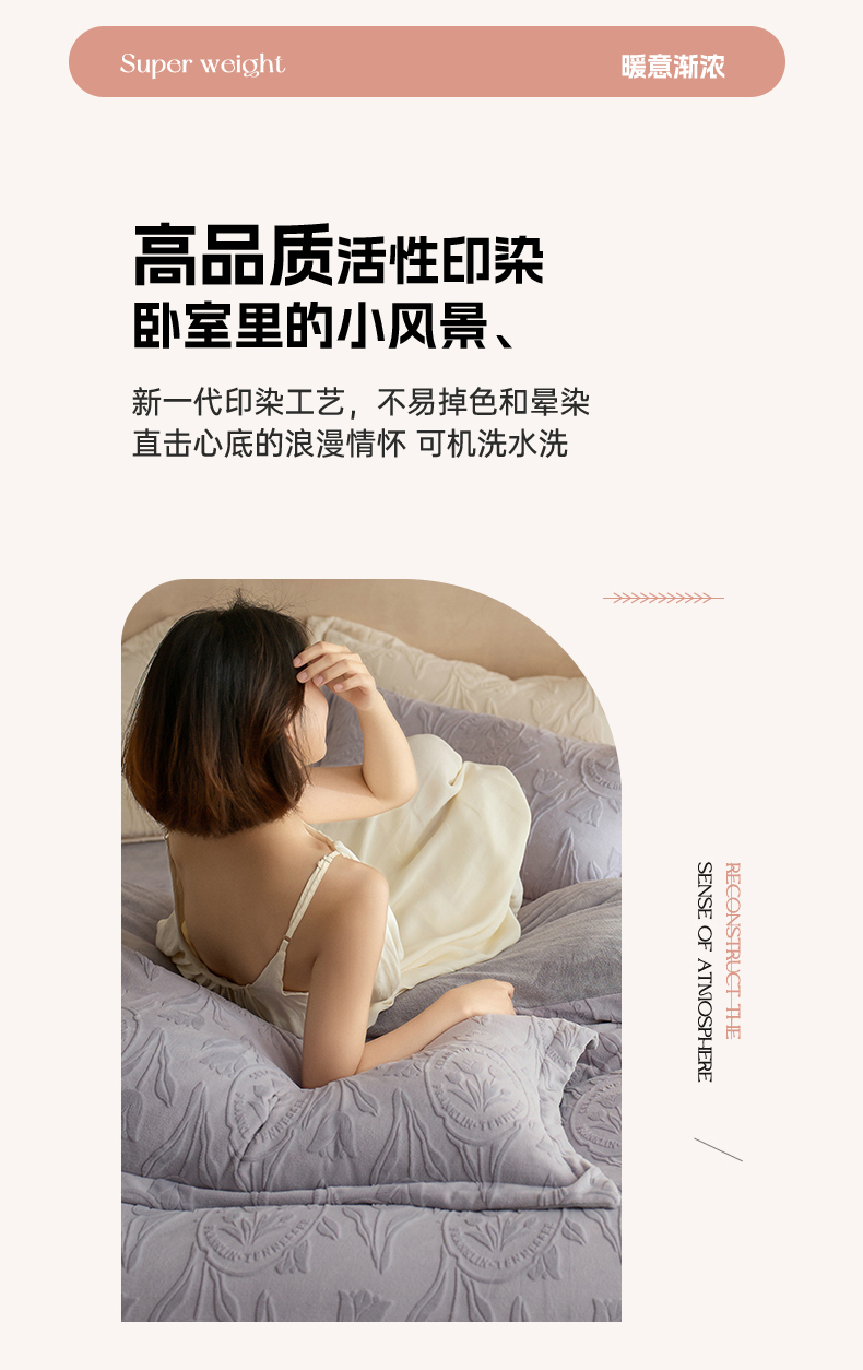 当前位置: 91家纺网 > 商品网购 > 床品套件 > 四件套 > 牛奶绒四件套 > 亿梵家居 2025秋冬新款A类全消光牛奶绒立体5D雕花绒四件套-风格一 (提供买家秀) 郁金香-香芋紫