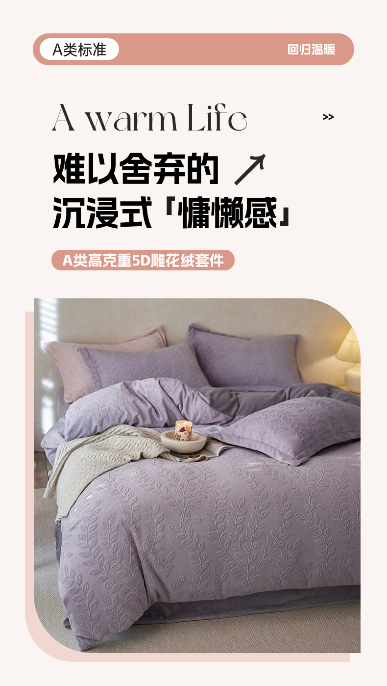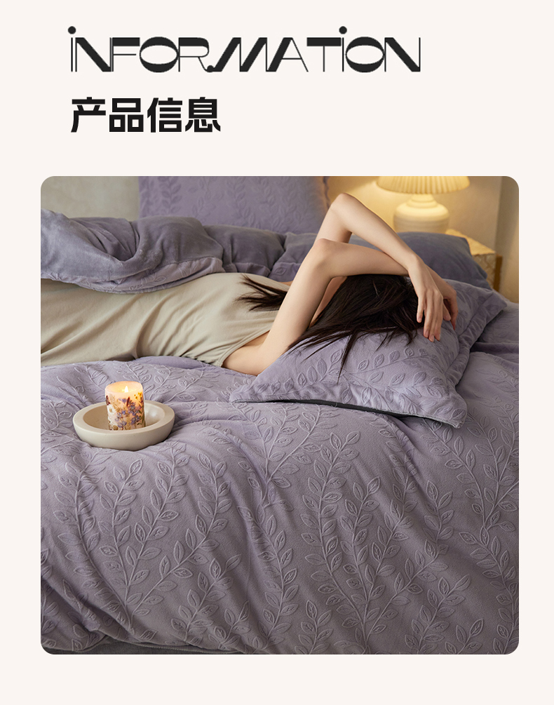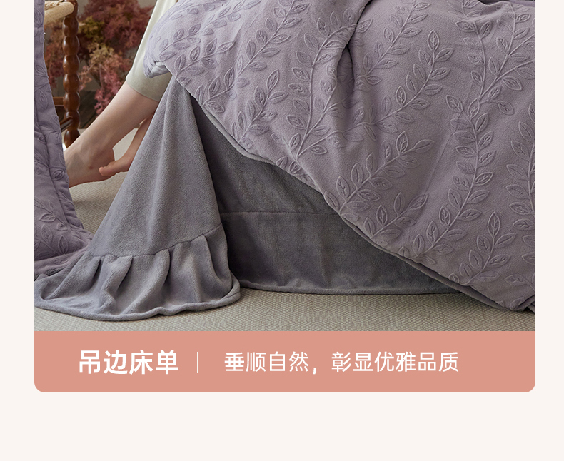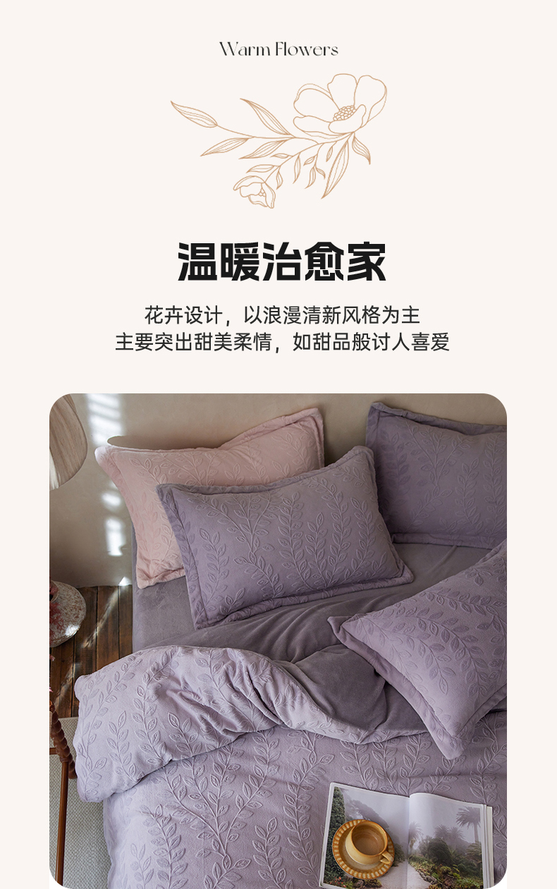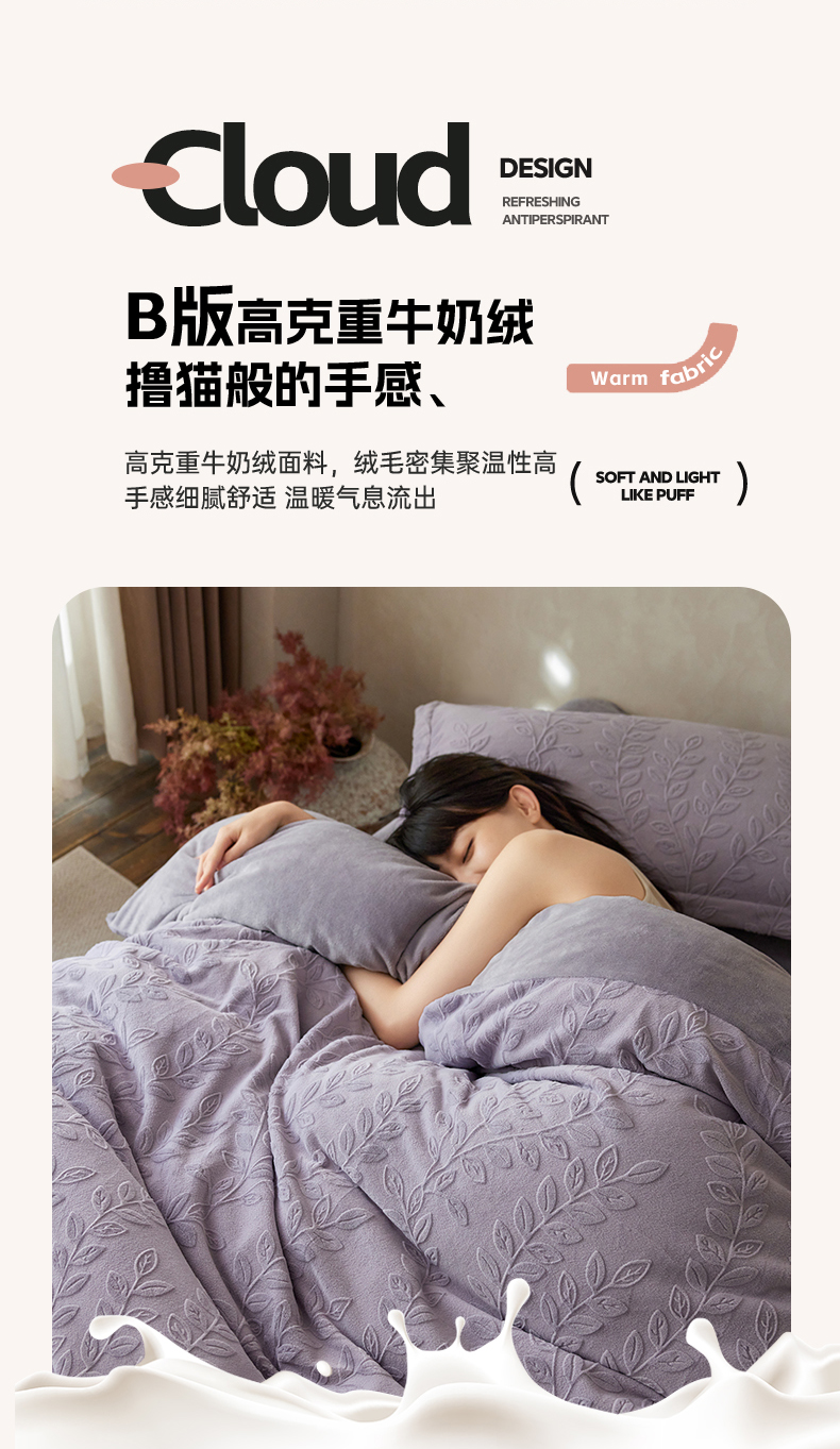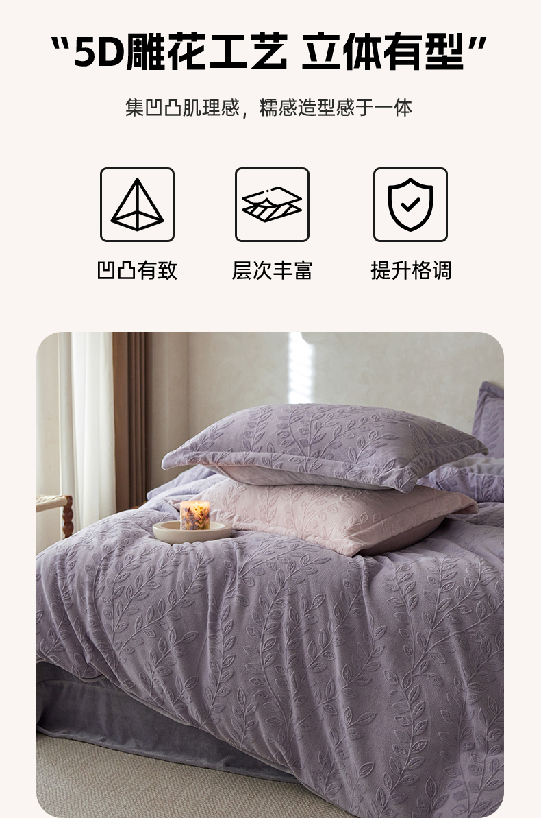 当前位置: 91家纺网 > 商品网购 > 床品套件 > 四件套 > 牛奶绒四件套 > 亿梵家居 2025秋冬新款A类全消光牛奶绒立体5D雕花绒四件套-风格一 (提供买家秀) 安娜花园-香芋紫