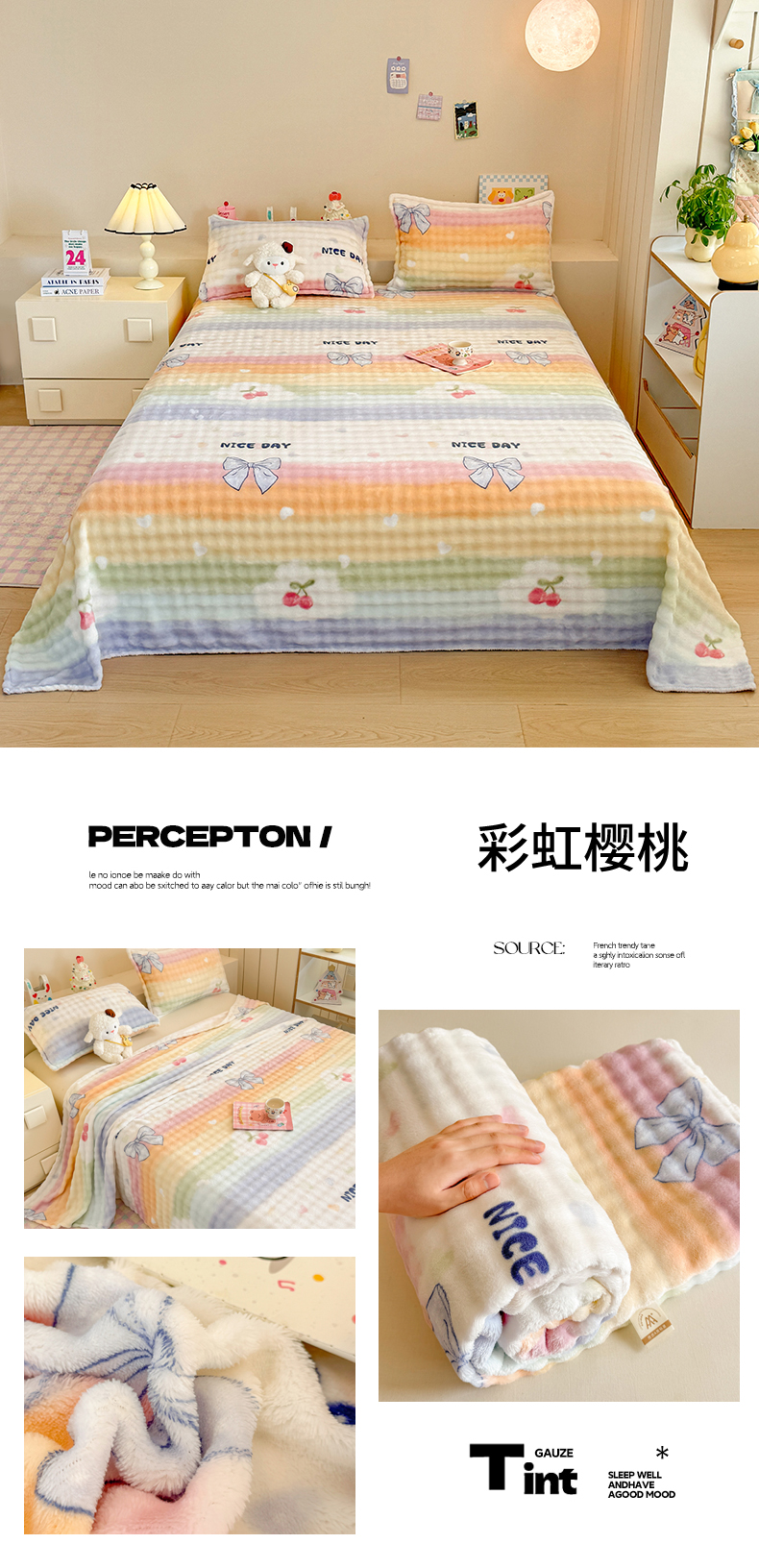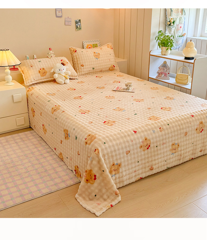 (总)绣女坊 2025新款A类高克重牛奶绒泡泡绒印花床单单件冬季保暖毛绒毯子绒床单三件套,黄油小熊,爱心kt,爱心蝴蝶结-绿,彩虹樱桃,公主kt,蝴蝶结-兰,画笔卡通,简单条格,维尼日记,星星小熊,元气格子,追梦努比