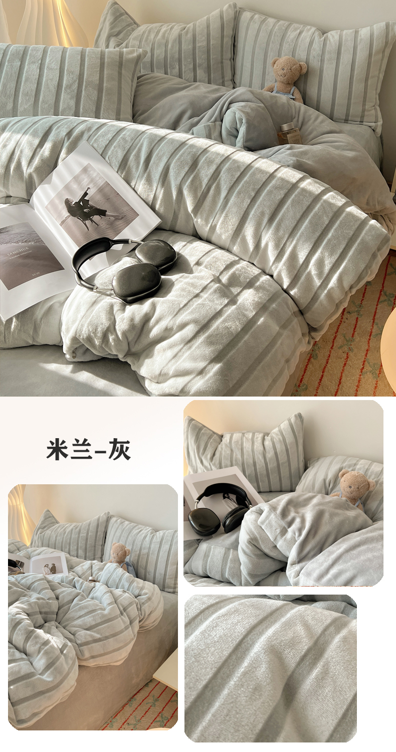 当前位置: 91家纺网 > 商品网购 > 床品套件 > 四件套 > 牛奶绒四件套 > 三朵家纺 2025新款3D立体加厚雕花绒牛奶绒四件套-米兰系列 米兰-灰