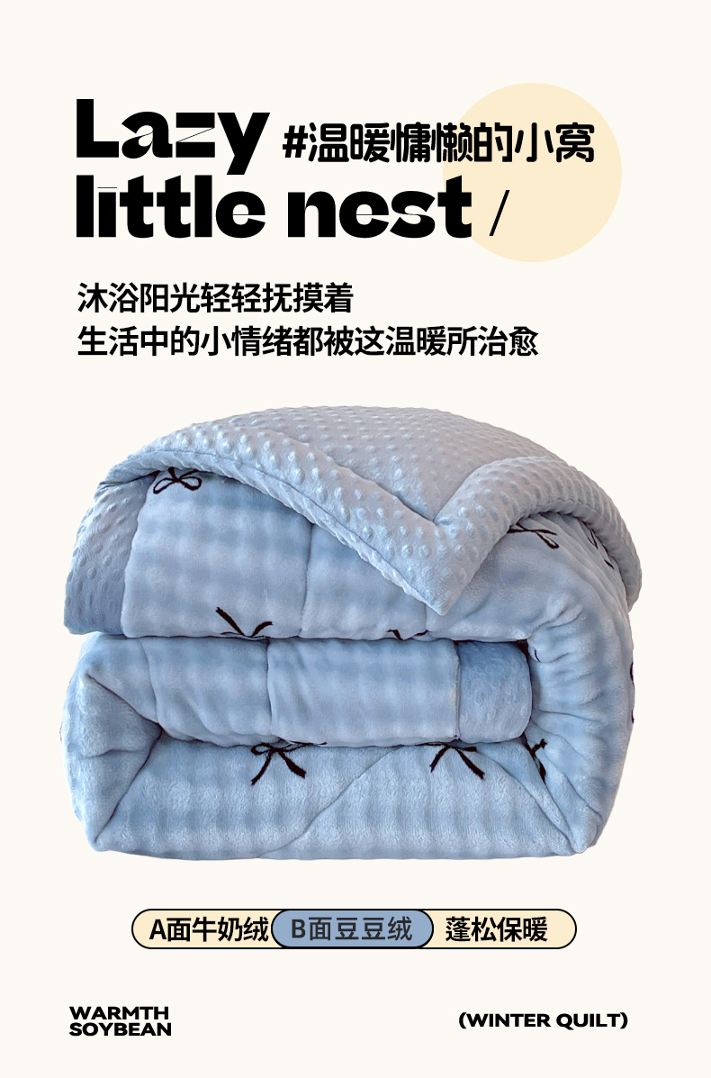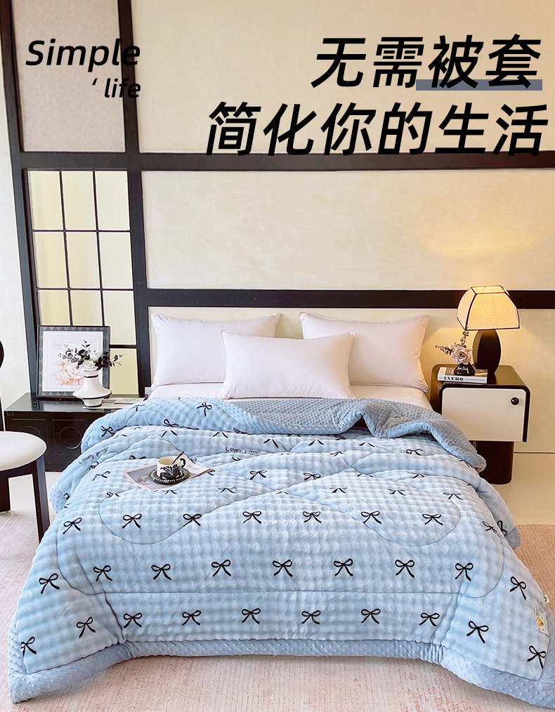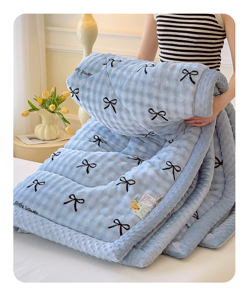 商品名称:云家 2025直播热款兔兔绒豆豆被三层夹棉加厚毛毯毯子牛奶绒冬被泡泡兔毛绒保暖被子被芯 奶油泡芙