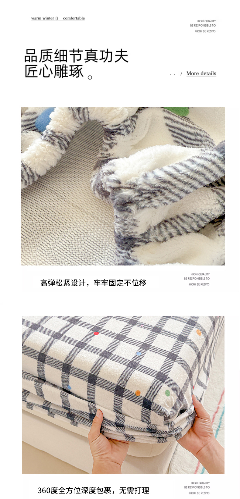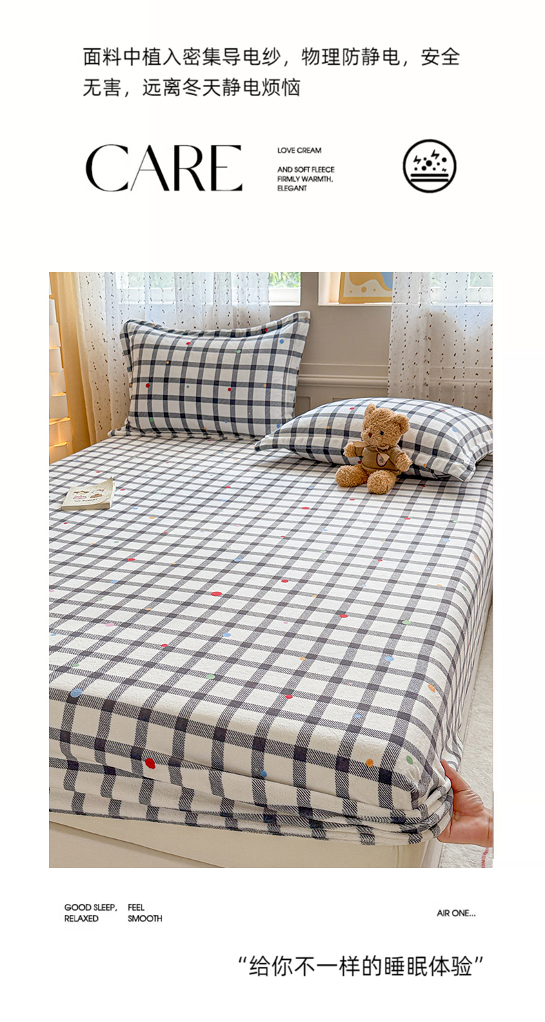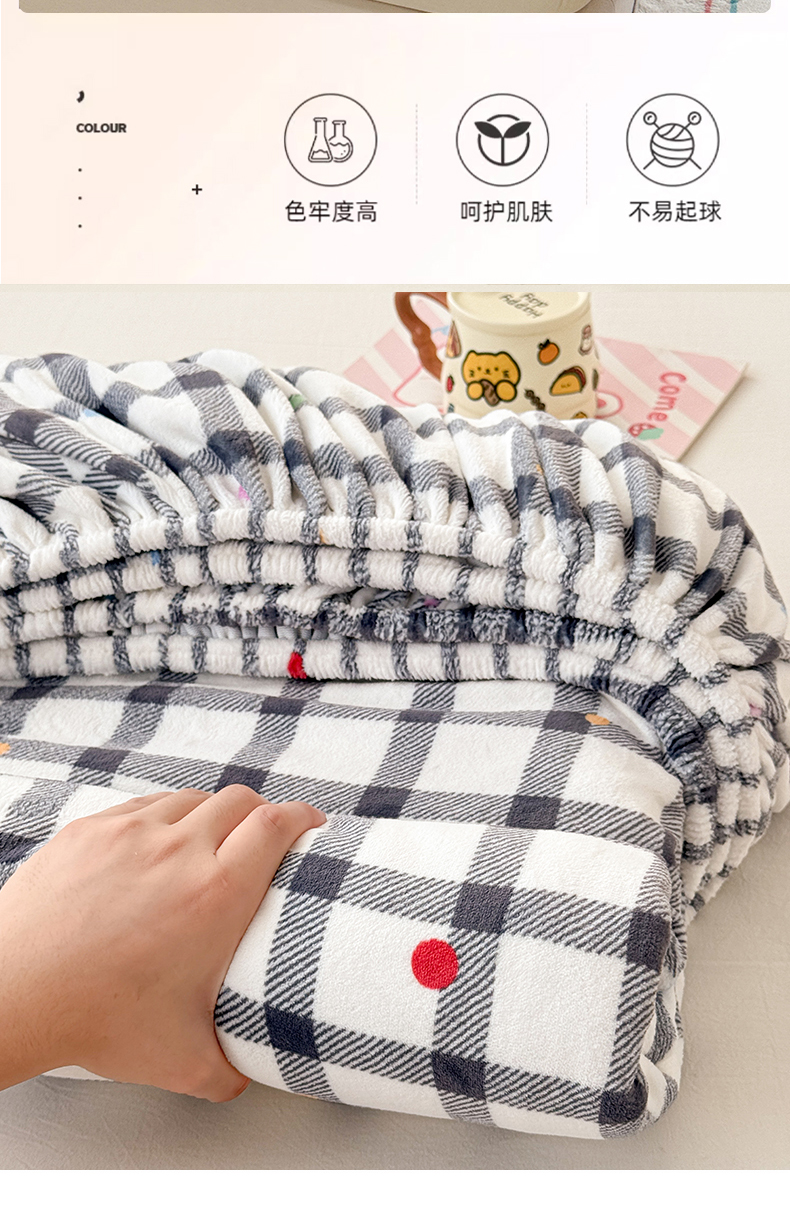 • 91家纺网 家纺一手货源 找家纺 丽美人 2025新款高克重印花牛奶绒无印风床笠款(A类母婴级面料) 黑白格调