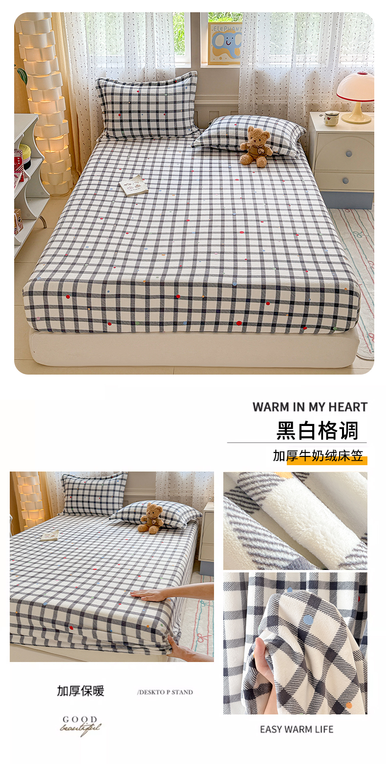 丽美人 2025新款高克重印花牛奶绒无印风床笠款(A类母婴级面料) 黑白格调