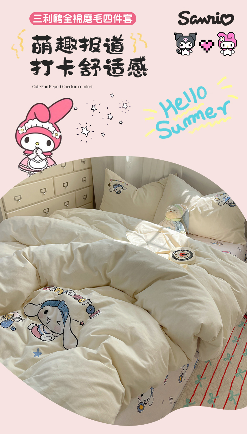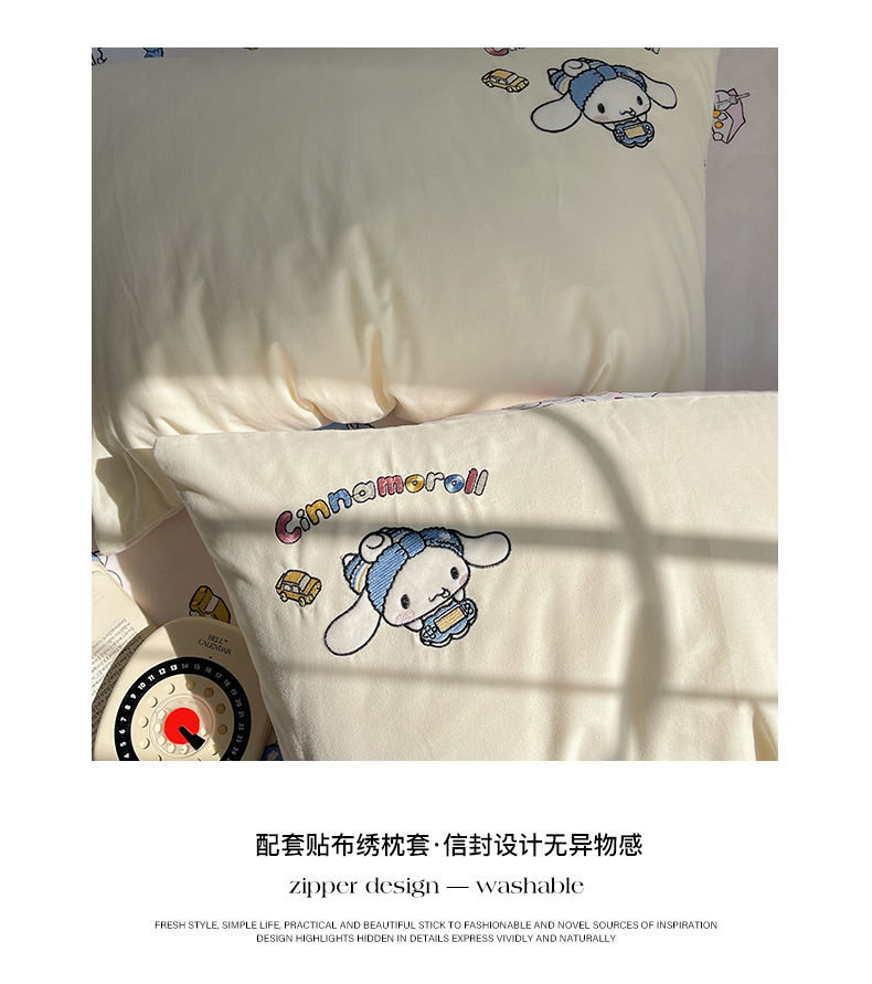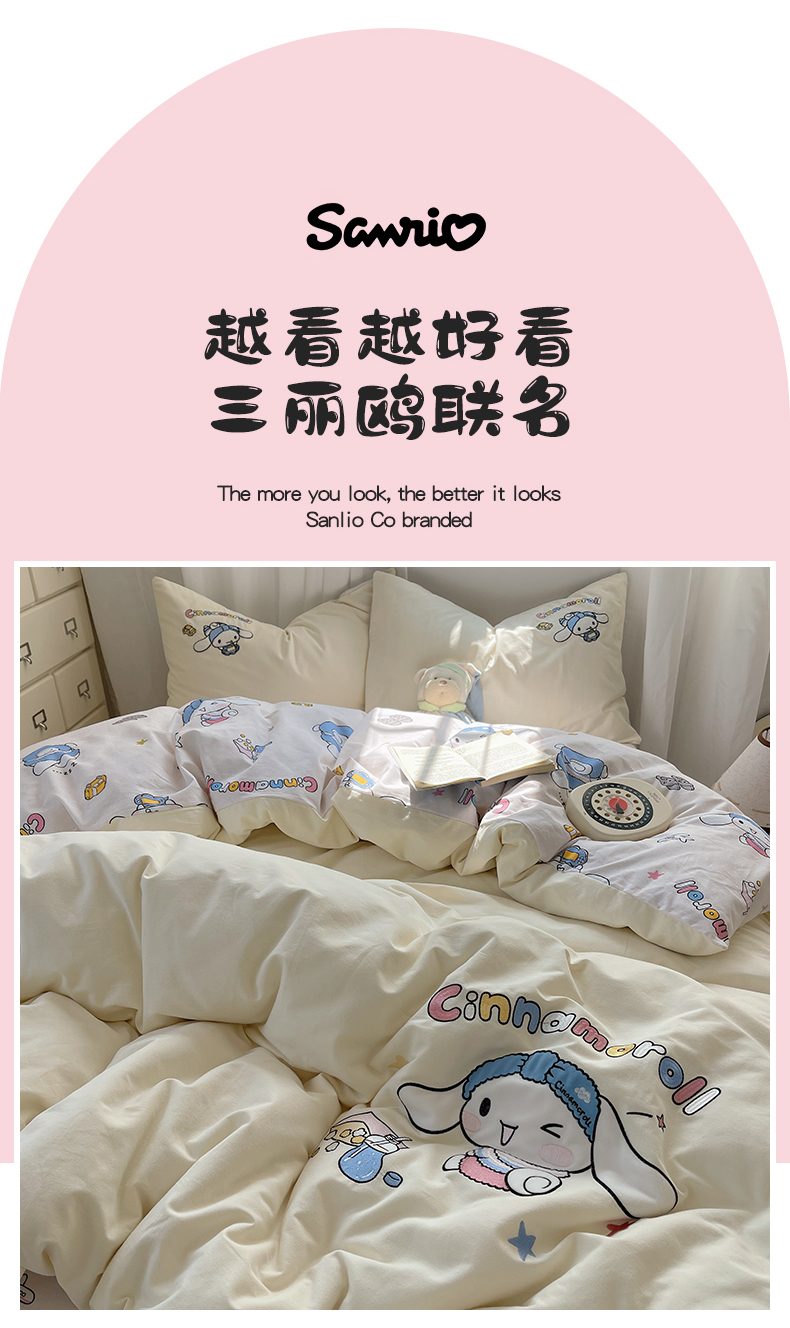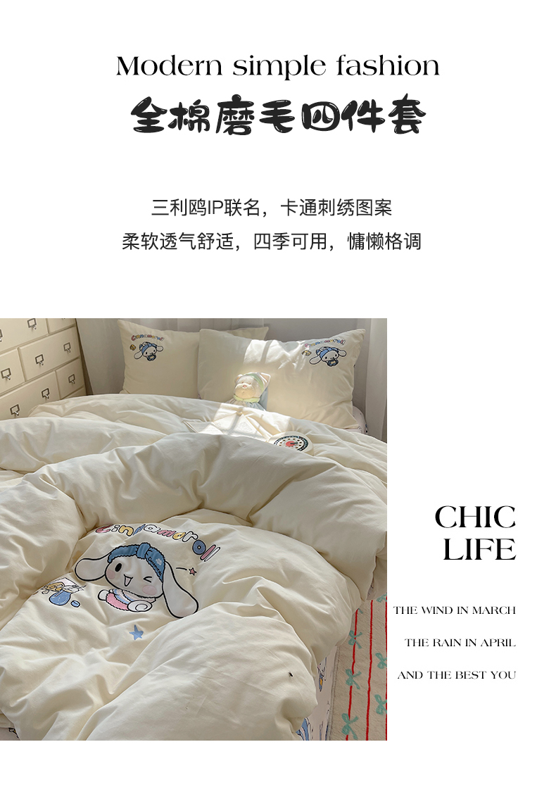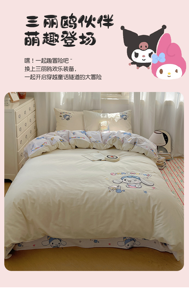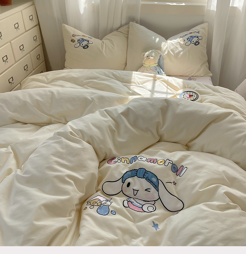 当前位置: 91家纺网 > 商品网购 > 床品套件 > 四件套 > 全棉普通四件套 > 小叮当家纺仓储工厂店 2025新款提供买家秀爆款花型不断货三丽鸥绣花全棉纯棉磨毛卡通四件套 撒娇玉桂狗-米