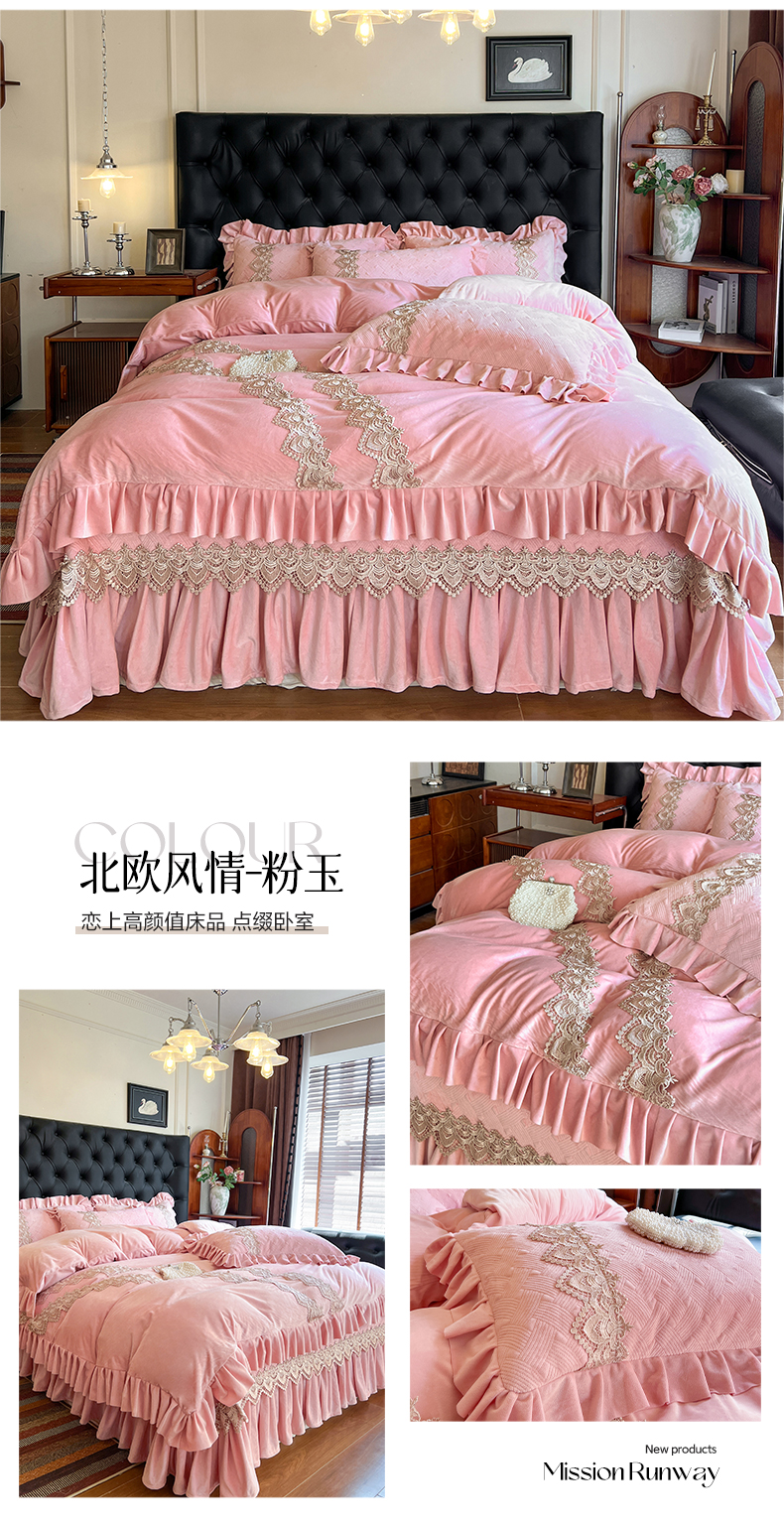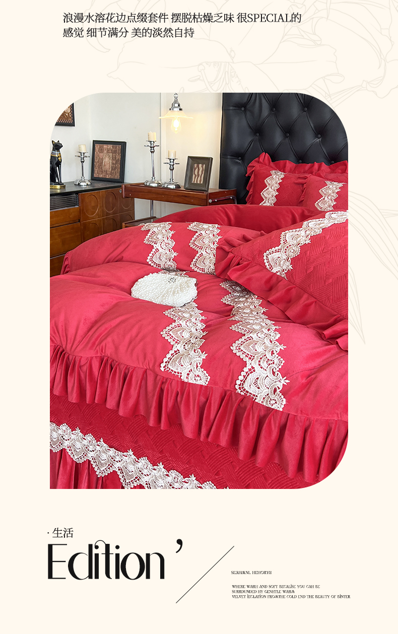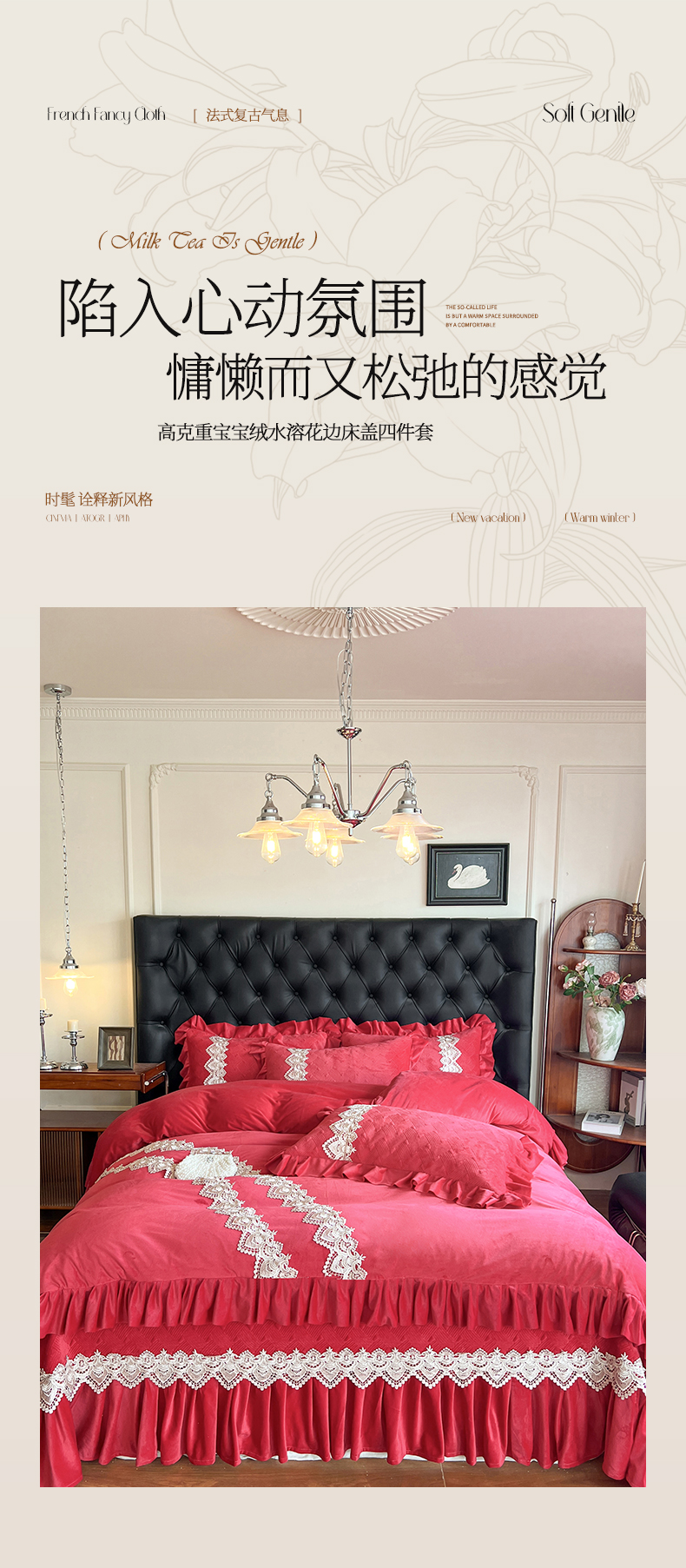(总)瑞宝 2025新款宝宝绒夹棉床裙四件套-香奢丽影,香奢丽影-奶油白,香奢丽影-高级灰,香奢丽影-豆沙,香奢丽影-胭脂红,香奢丽影-樱花粉,香奢丽影-中国红