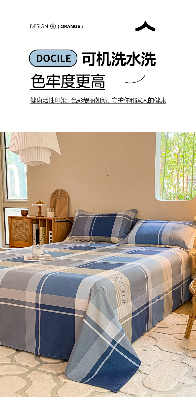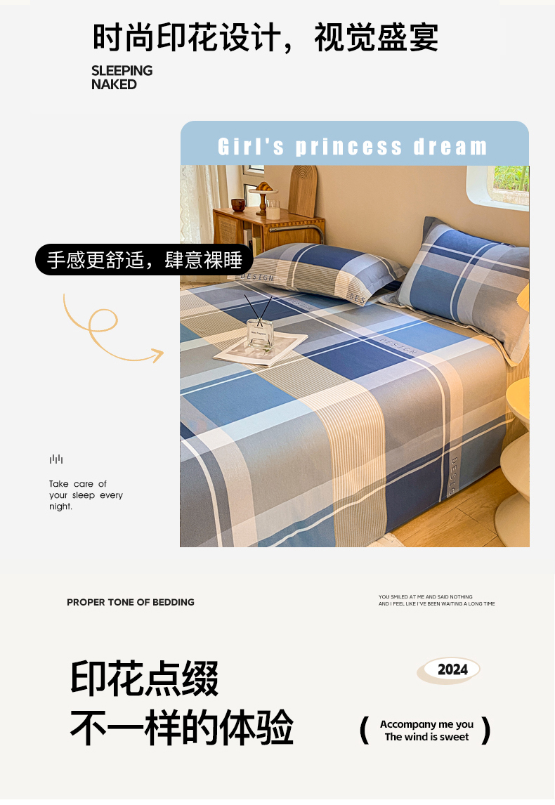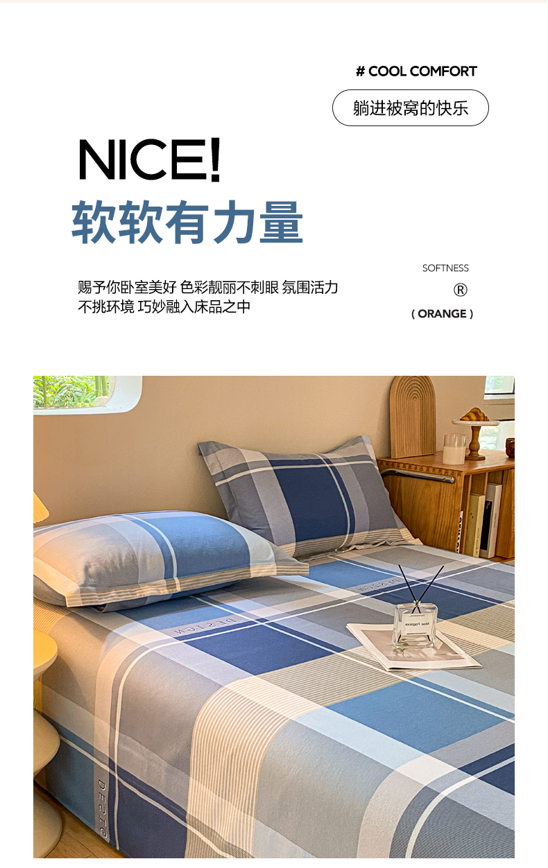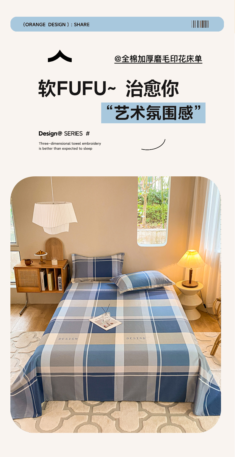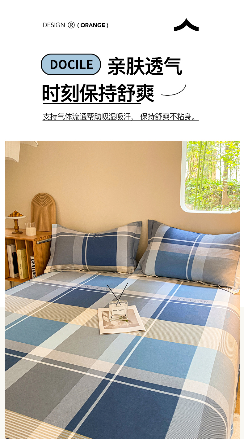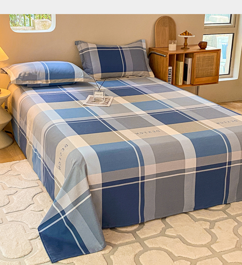 小叮当家纺仓储工厂店 2025新款(买家秀 不断货)A类全棉纯棉磨毛单床单 床单单件 蓝格子