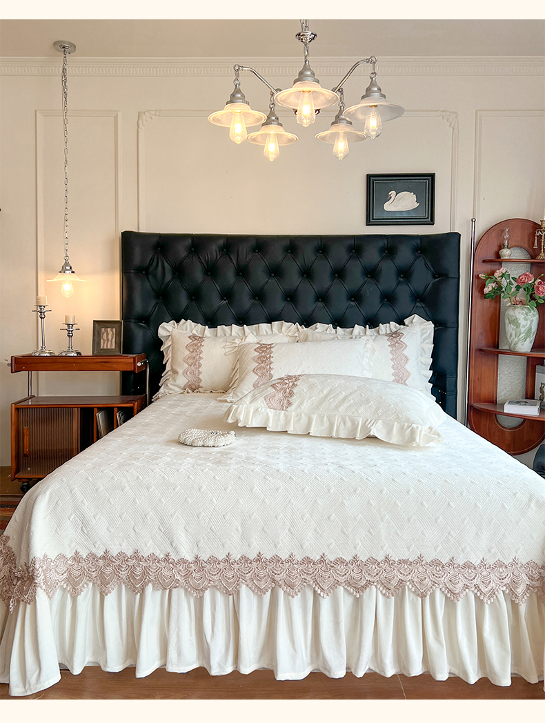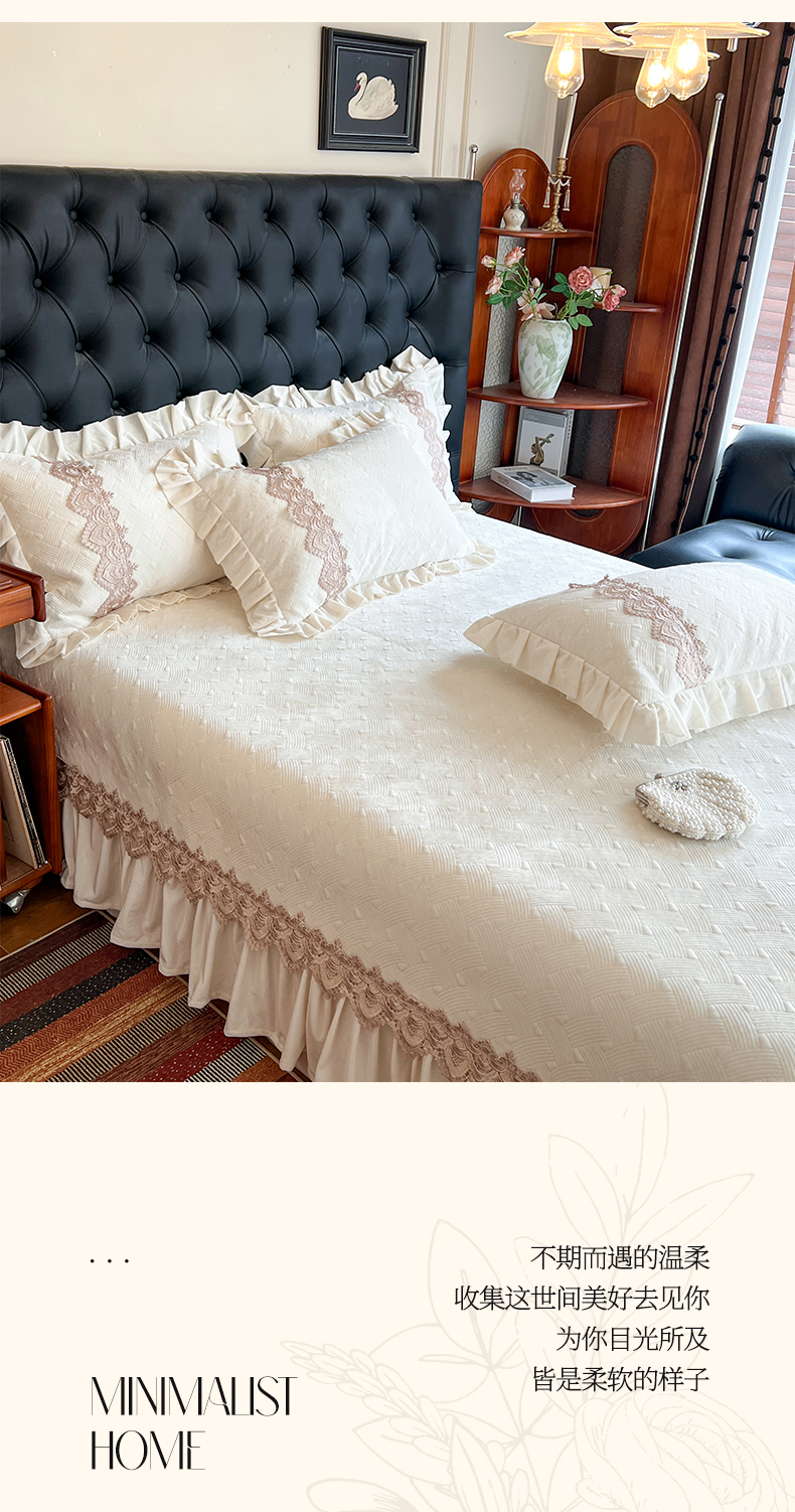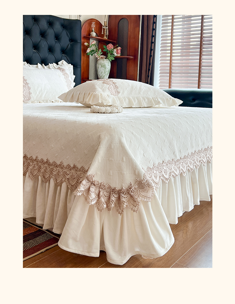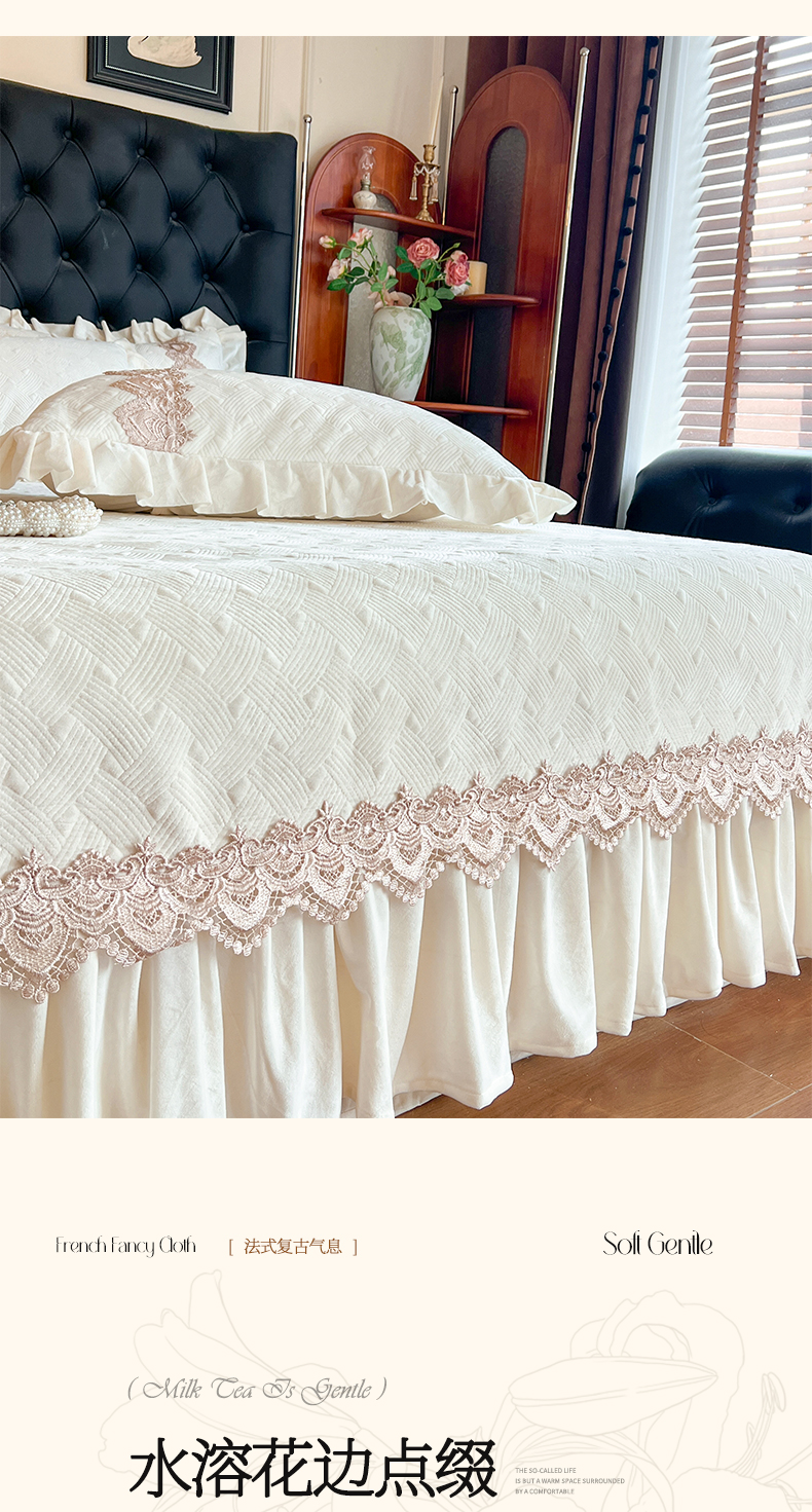 (总)瑞宝 2025新款雕花牛奶绒花边夹棉床盖四件套-莫妮卡,奶昔白,抹茶绿,奶茶咖,少女粉,雾蓝
