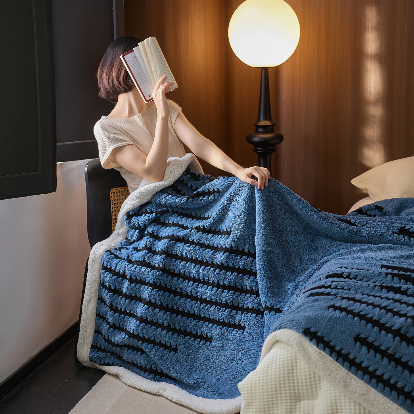 商品名称:安莱生活 2025新款阳离子羊羔绒200克毛毯--云杉系列 云杉-黑灰