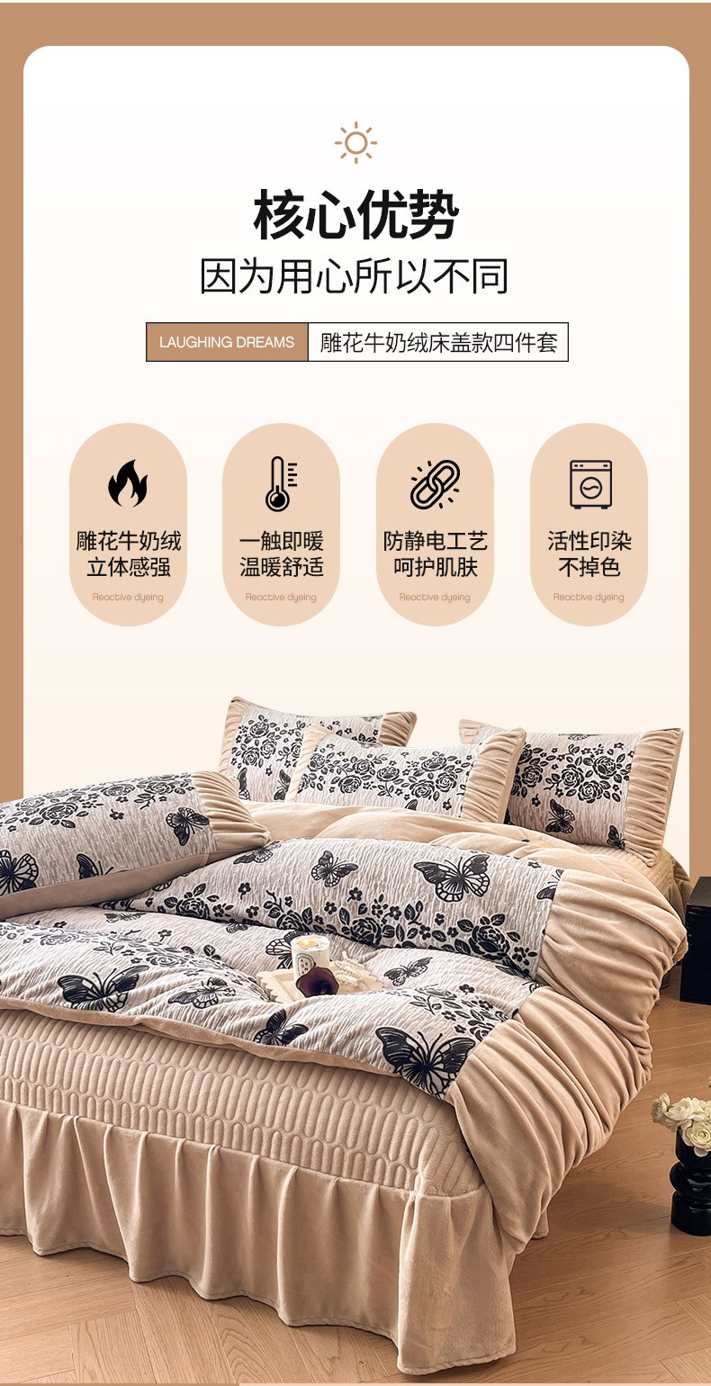 当前位置: 91家纺网 > 商品网购 > 床品套件 > 四件套 > 牛奶绒四件套 > 金阳光家纺 2025新款雕花绒色烂牛奶绒法式泡泡袖牛奶绒床单床盖四件套 香谢落叶-花烬影