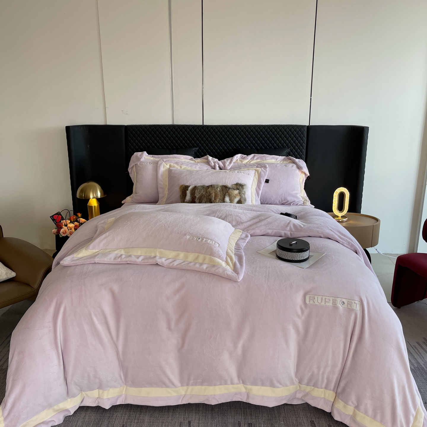 莱豫家纺 2025秋冬新款加厚全消光绣花牛奶绒四件套标准12斤加大14斤送包装 马德里粉