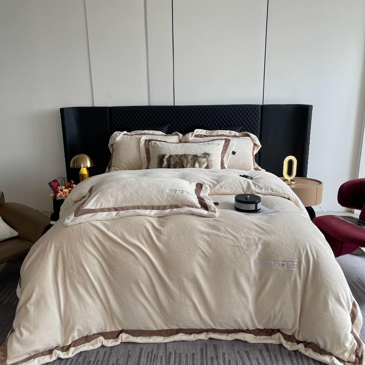 商品名称:莱豫家纺 2025秋冬新款加厚全消光绣花牛奶绒四件套标准12斤加大14斤送包装 马德里粉