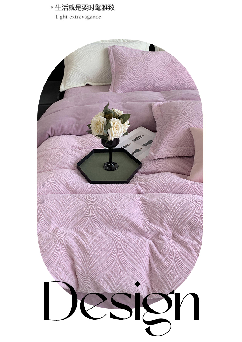 商品名称:莱豫家纺 2025新款全消光雕花牛奶绒四件套-流年 流年风信紫