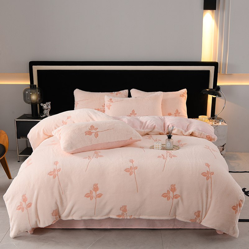 商品名称:德比尔斯 2025新款兔毛绒兔兔绒雕花牛奶绒四件套 叶影