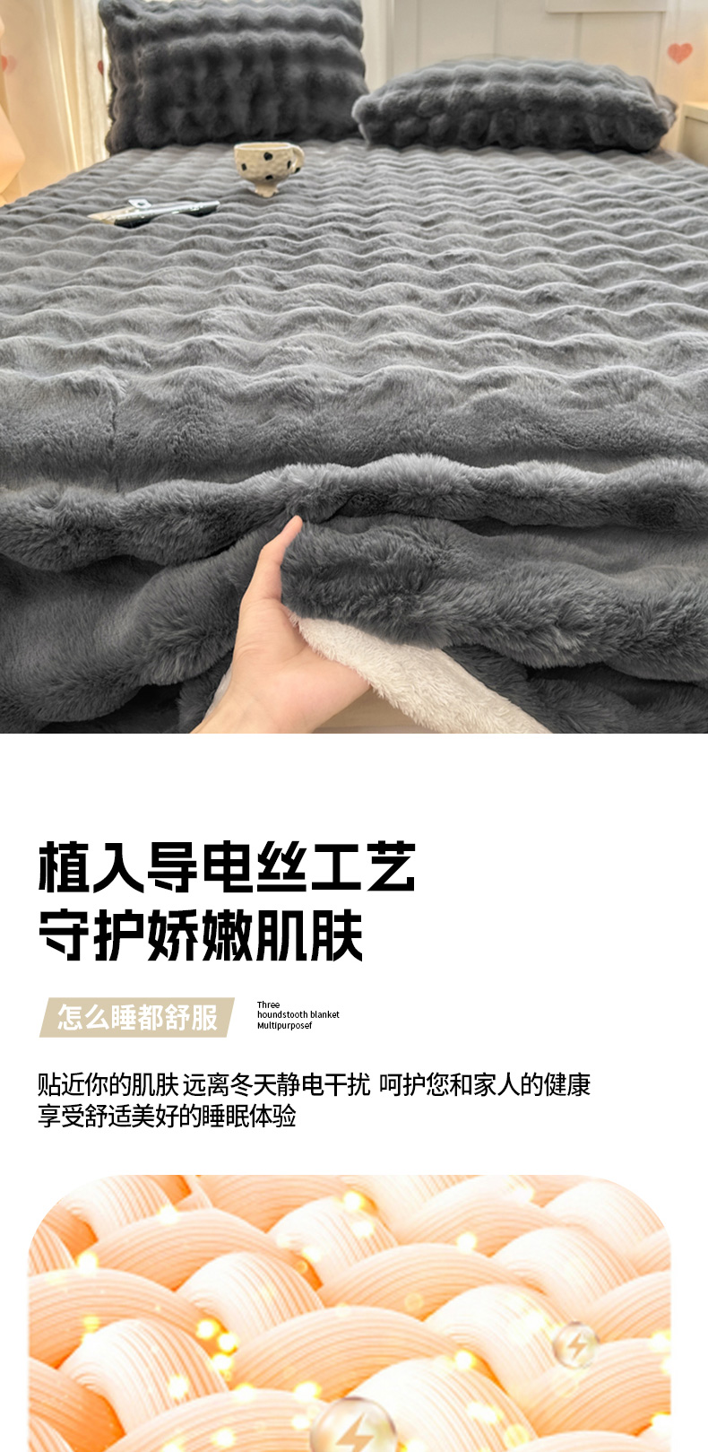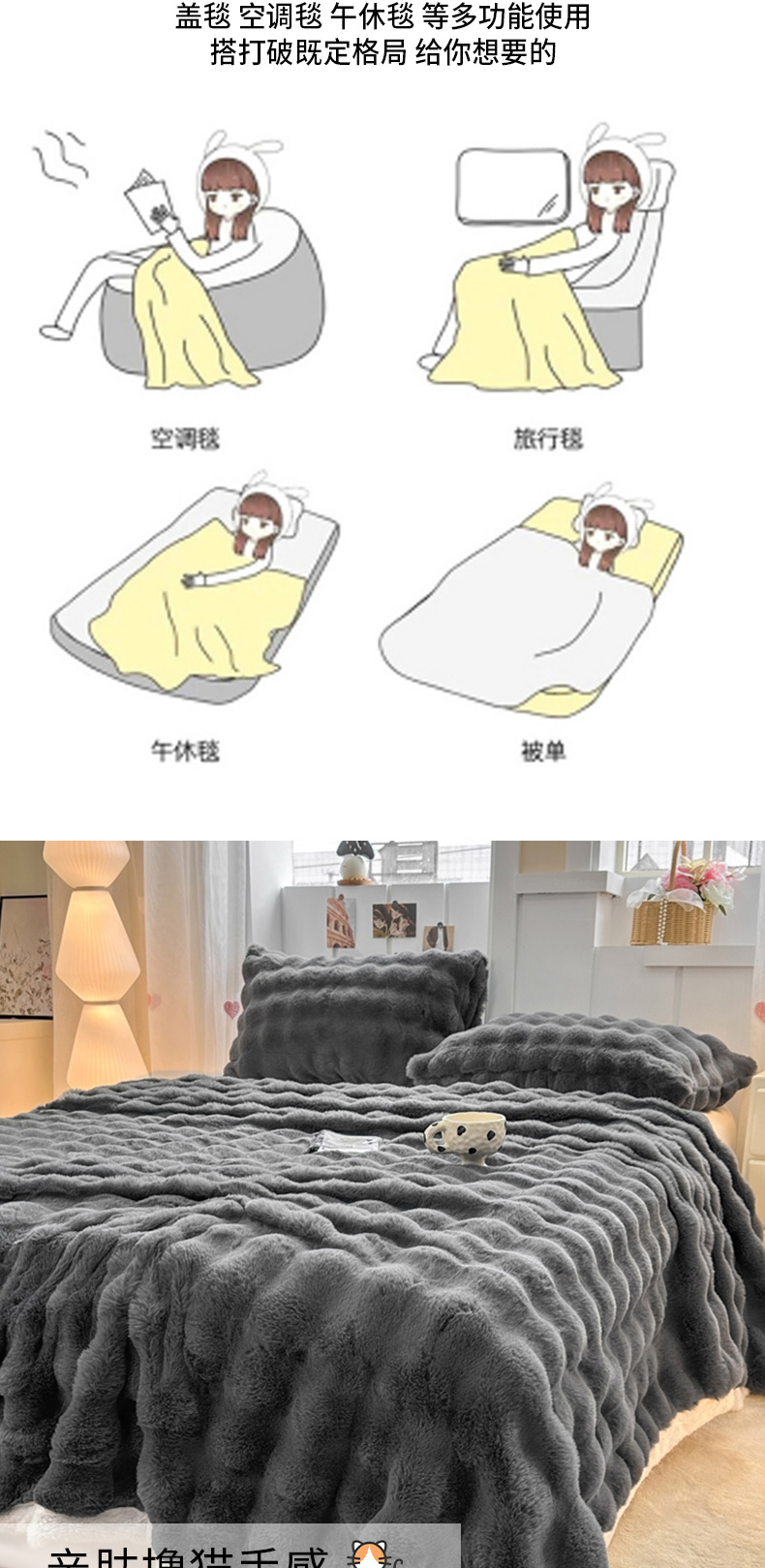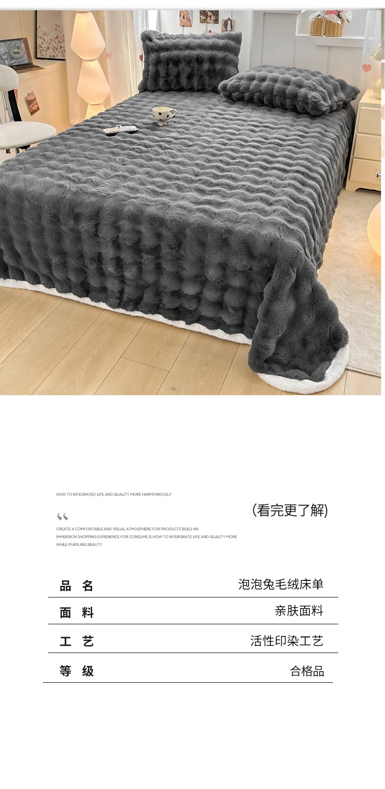 (总)麒东家纺 2025新款泡泡绒兔毛绒床单,流彩粉,深灰,咖色,米白,天蓝,流彩蓝,流彩绿,流彩紫