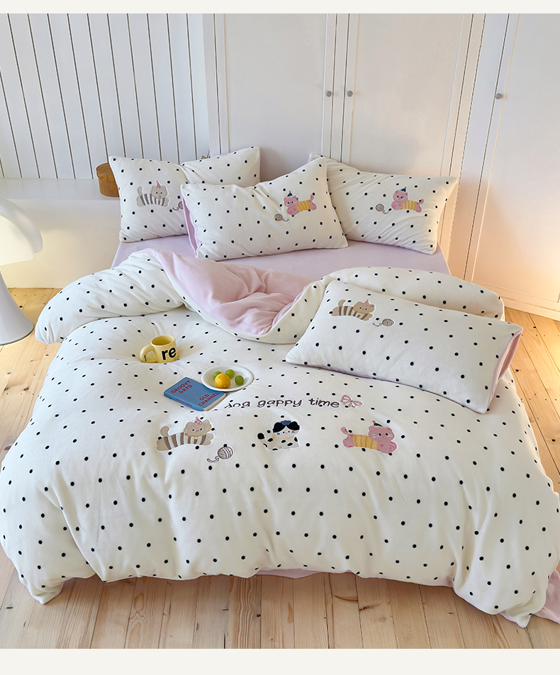 (总)优悦生活馆 2025新款牛奶绒卡通印花刺绣四件套系列,波点猫-白+粉,波点猫-蓝,格子熊-豆沙,格子熊-灰,格子熊-咖,条纹狗-咖,条纹狗-蓝,条纹狗-绿