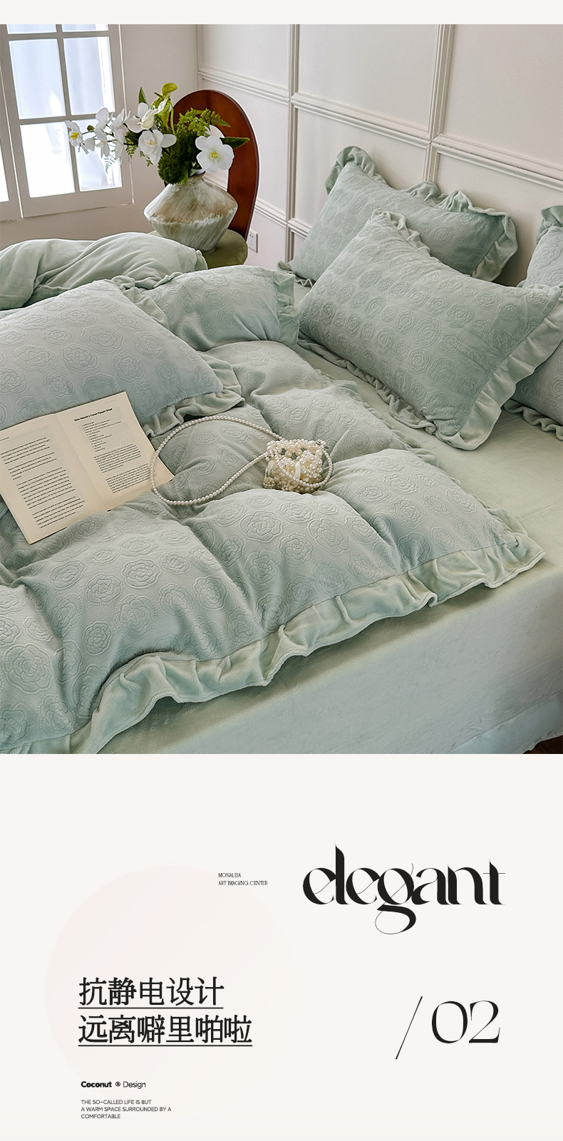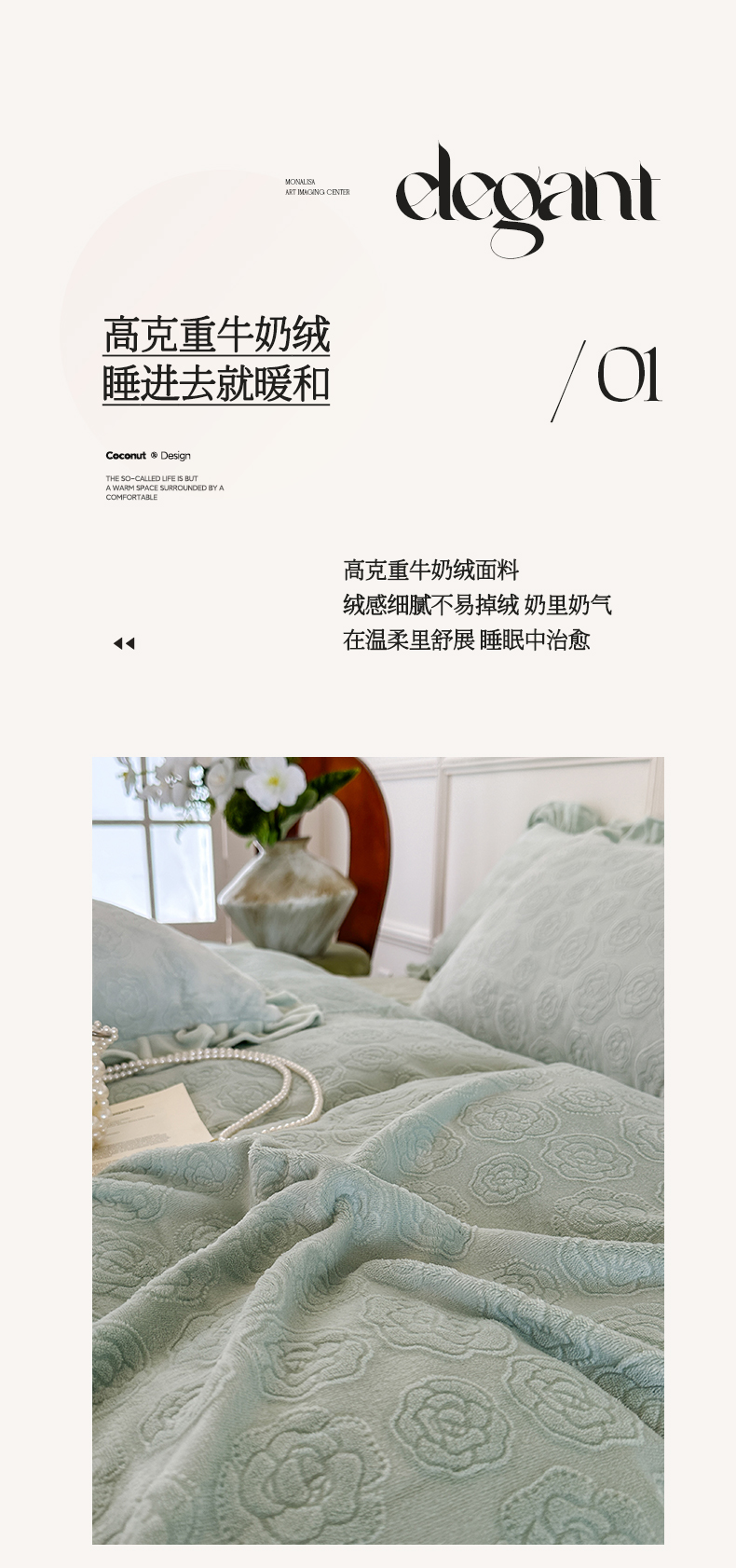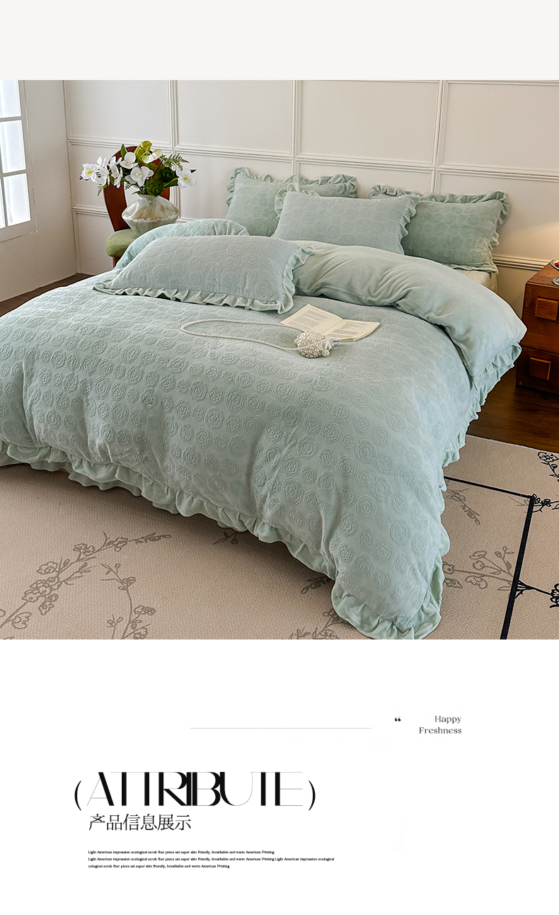 当前位置: 91家纺网 > 商品网购 > 床品套件 > 四件套 > 牛奶绒四件套 > 野合家纺 2025新款法式A类雕花牛奶绒韩版公主风四件套床盖款床单款床笠款 山茶花-马利兰