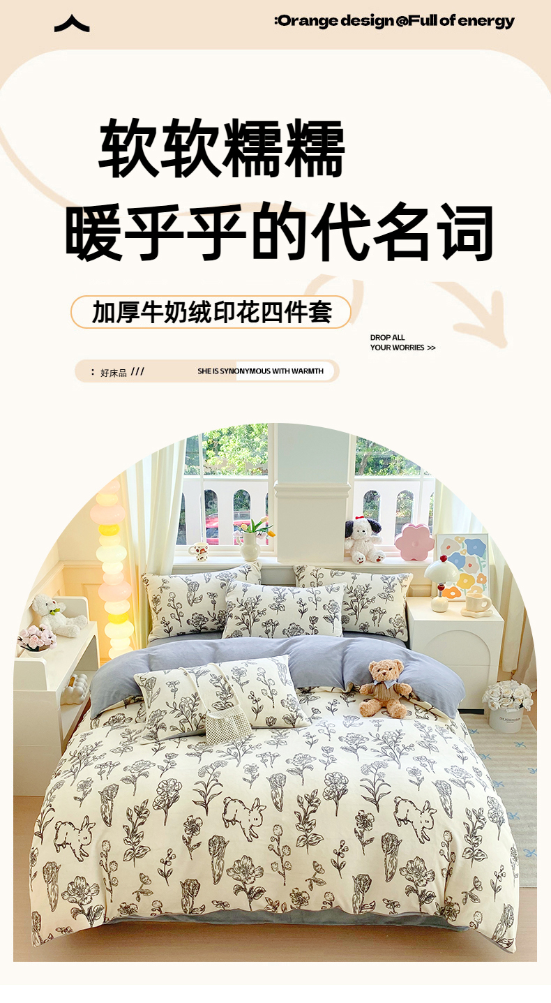 当前位置: 91家纺网 > 商品网购 > 床品套件 > 四件套 > 牛奶绒四件套 > 悦织湾家纺 2025新款高克重牛奶绒印花四件套床单床笠轻奢时尚床上用品三四件套被套 兔斯基
