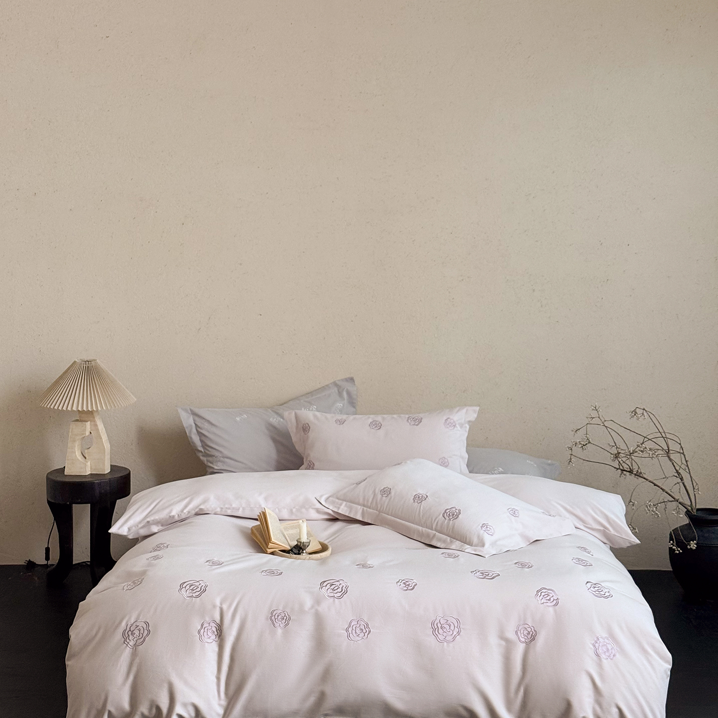 (总)佳汐蓝家纺 2026新款新疆长绒棉全棉纯棉轻奢五线刺绣四件套,初雪白,稻谷米,冷釉灰,汐雾蓝,薰衣紫,釉粉,朱砂红