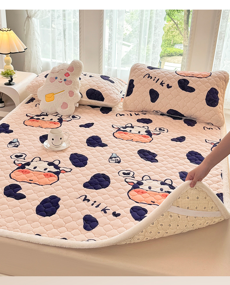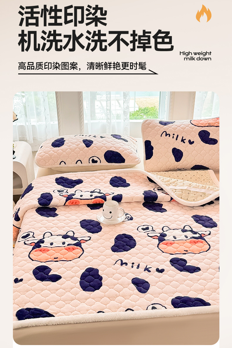 商品名称:优选 2025热款外贸跨境电商热销款冬季加厚牛奶绒印花床垫床垫学生单人宿舍上下铺 可爱奶牛