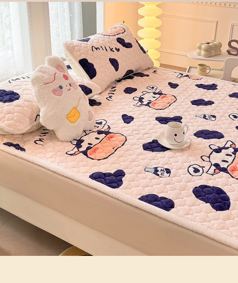 优选 2025热款外贸跨境电商热销款冬季加厚牛奶绒印花床垫床垫学生单人宿舍上下铺 可爱奶牛